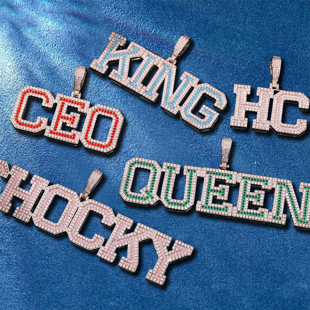 Custom Colored Stone Letter Iced Out Name Pendant