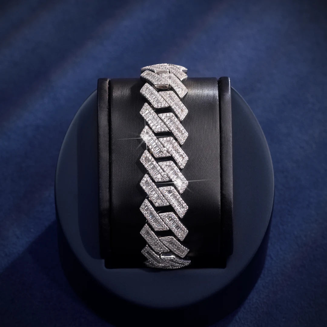 S925 MOISSANITE 18MM BAGUETTE PRONG CUBAN CHAIN & BRACELET