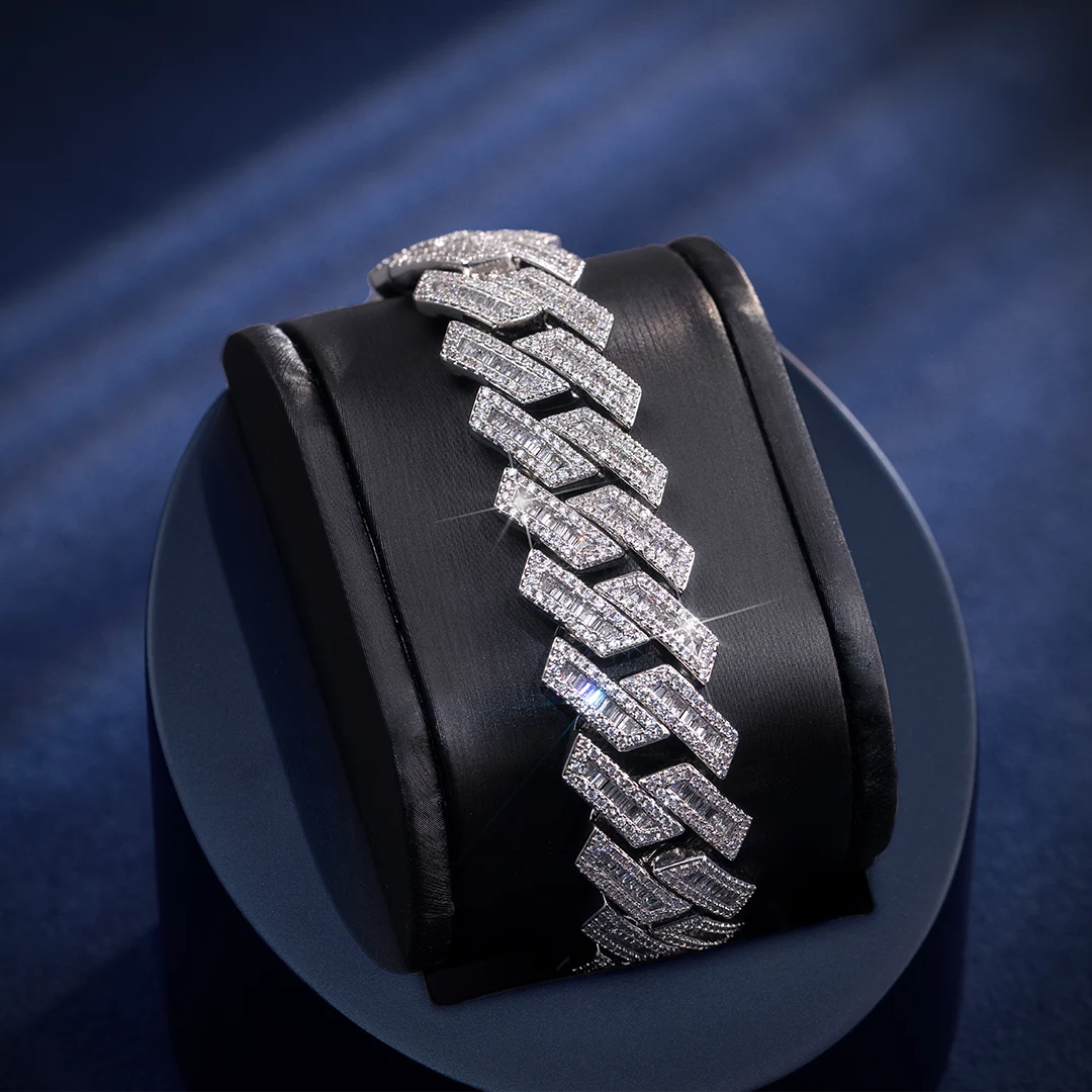 If you wanna purchase silver moissanite 18MM Baguette Prong Cuban Chain ,you can check the below link: