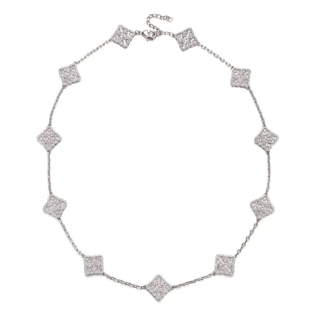 This Clustered Cross Floral Adjustable Necklace is an elegant jewelry piece, featuring a round with baguette stone. It is adjustable up to 18in, providing you with a custom fit. An ideal accessory for adding eye-catching detail to any outfit.