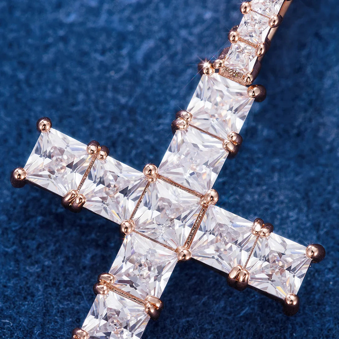 Classic cross elements with CZ Stones. Simple pendant but speaks volumes.This gorgeous cross pendant, set with flawless princess-cut CZ stones is beautifully filled with all mystery, night or day, when you walk In the crowd, can bring breathtaking surprises.