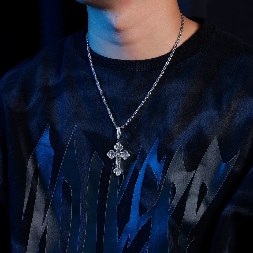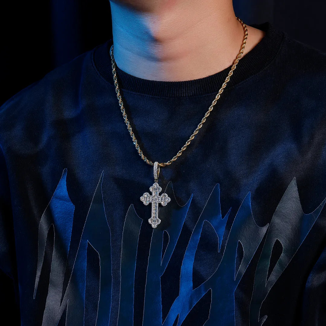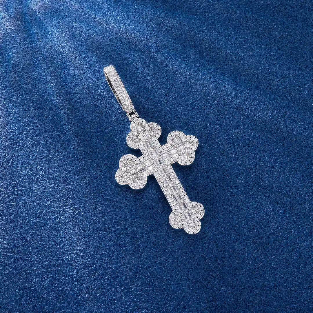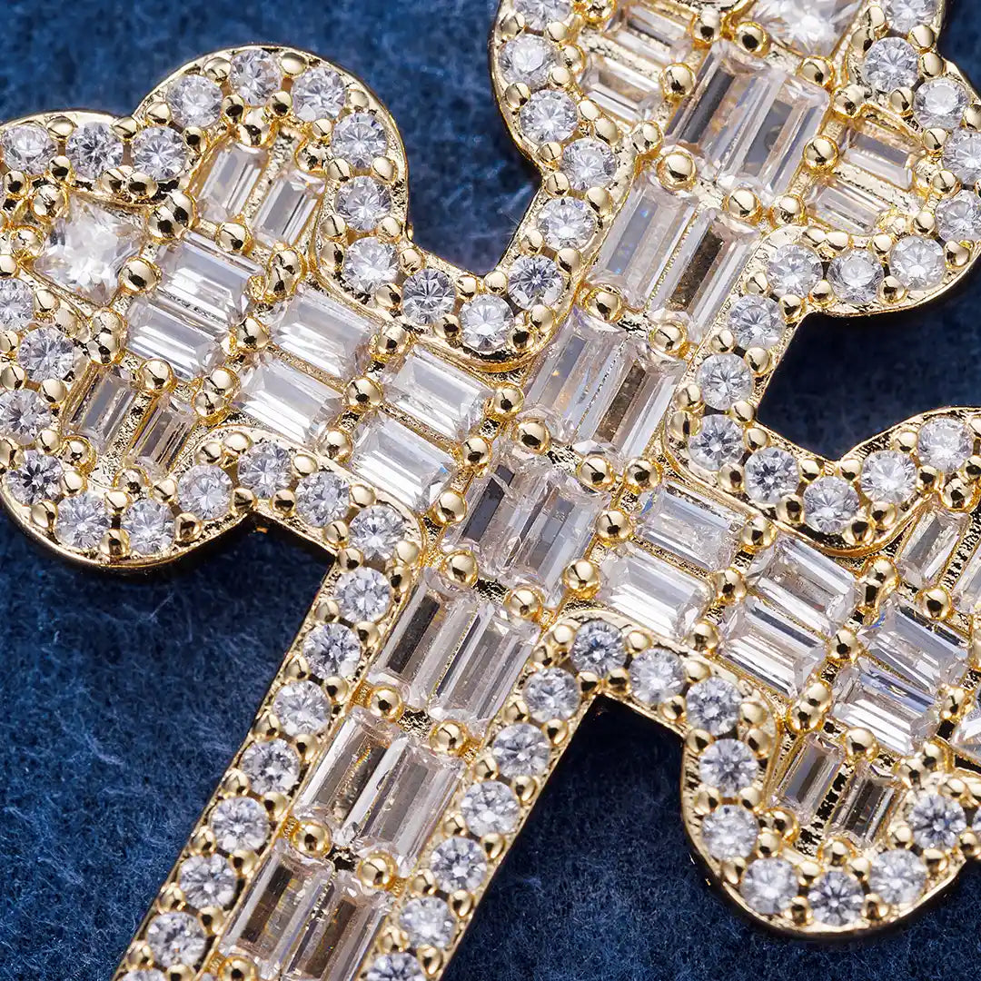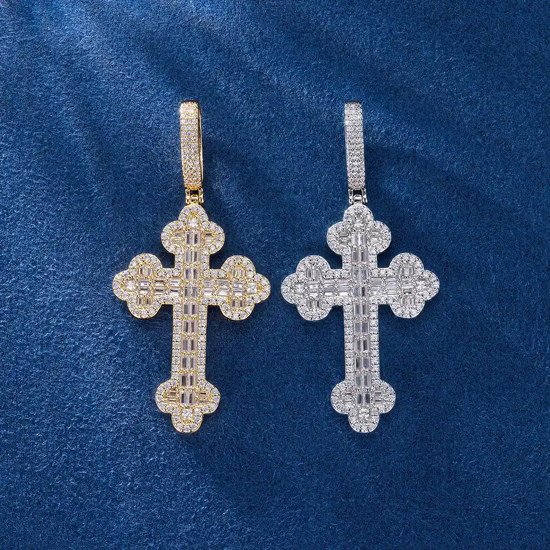 Double-Layered Baguette Bottoni Cross Pendant