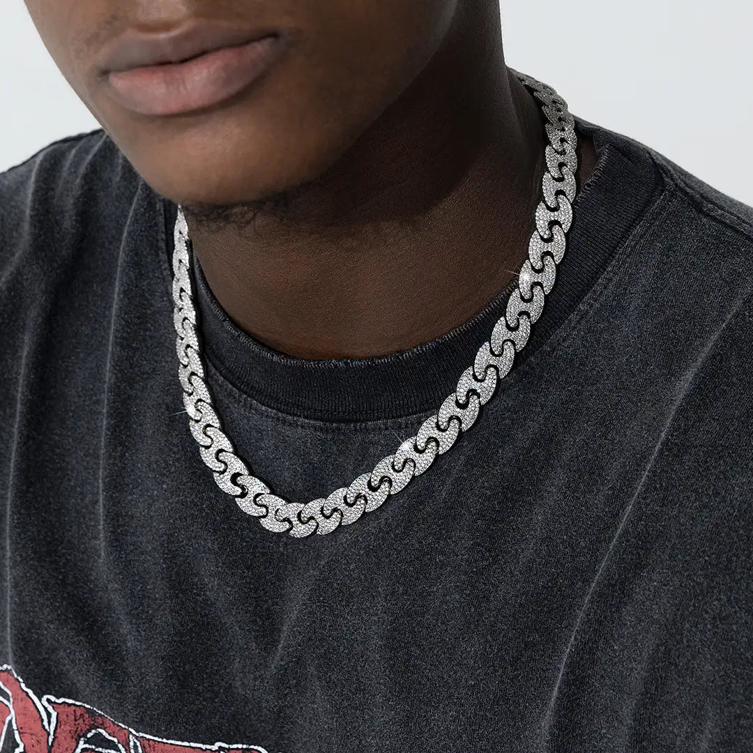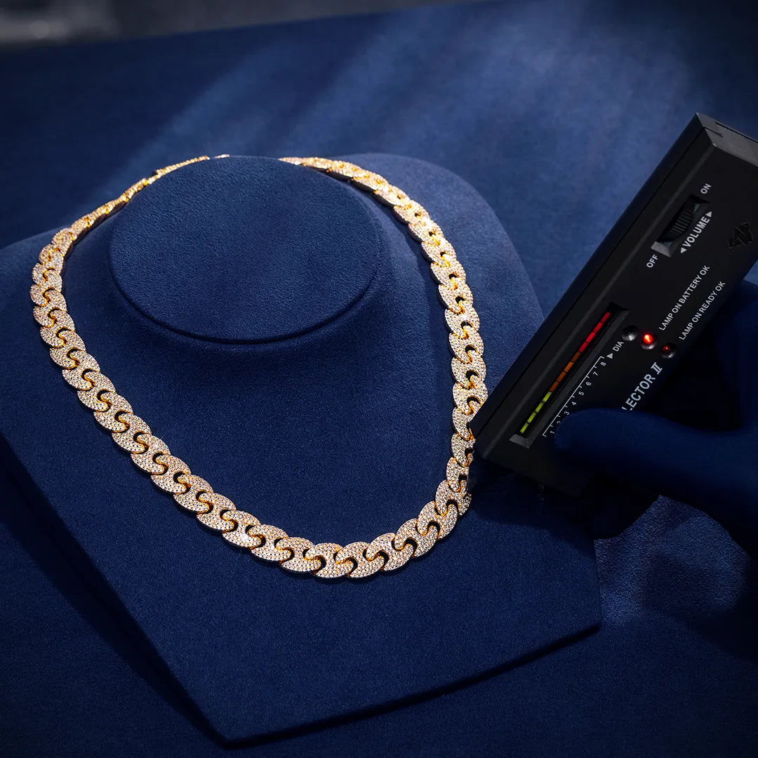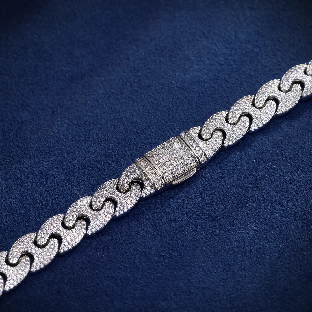 This unique G-Link chain features hand-set high quality MOISSANITE stone at an optimal price to crafted to perfection. Get ready for standing out from people.Make it happened in Icezeus.
