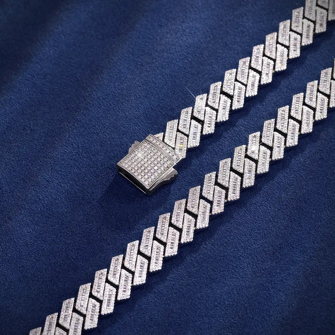 If you wanna purchase silver moissanite 18MM Baguette Prong Cuban Chain ,you can check the below link: