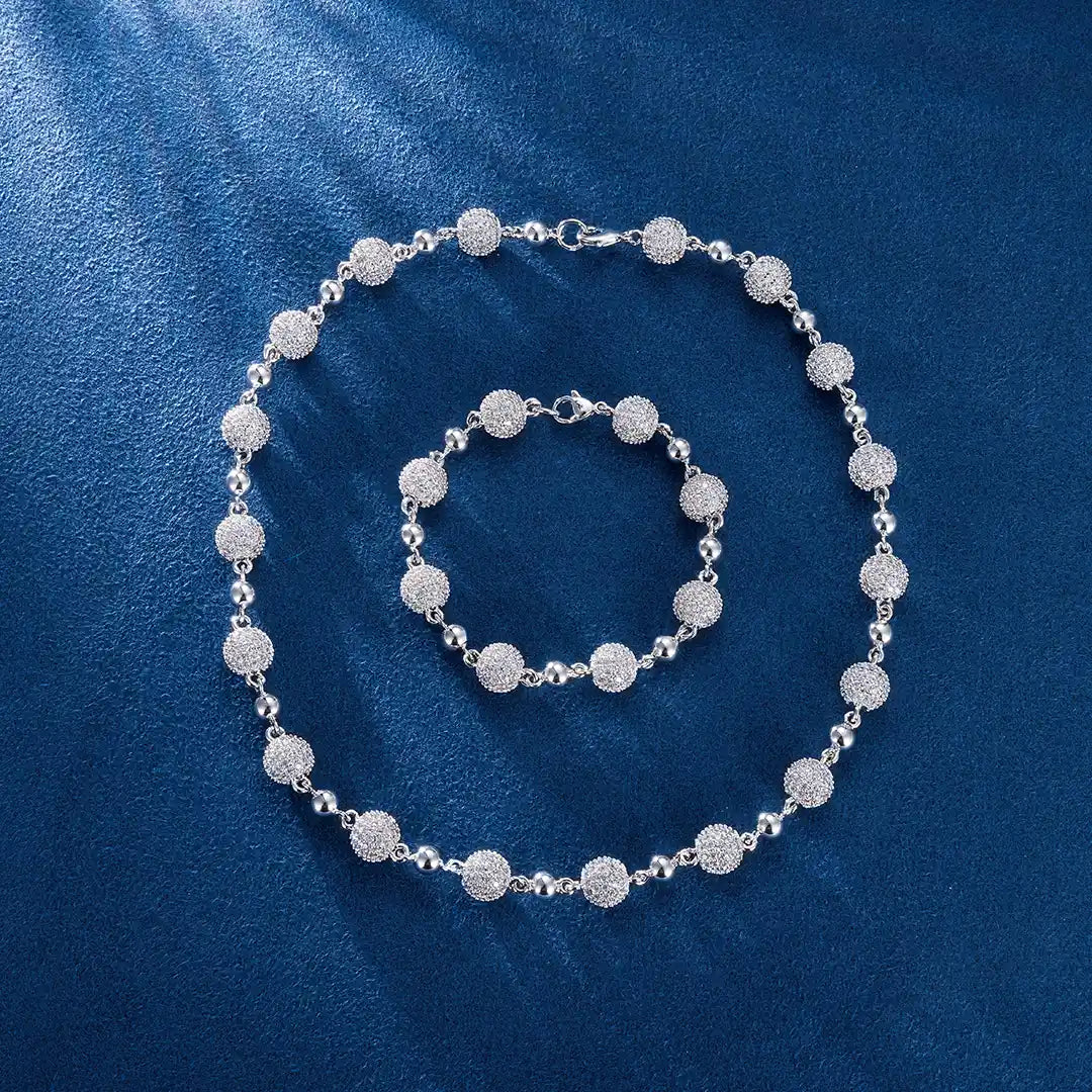 Big iced balls and small white gold balls interlace with each other, the hand setting the moissanite stone to make this chain shine from any angle. Elevate your style with S925 Moissanite Iced Ball Chain or Bracelet. With brilliance, this ball chain or bracelet will be sure to make heads turn.