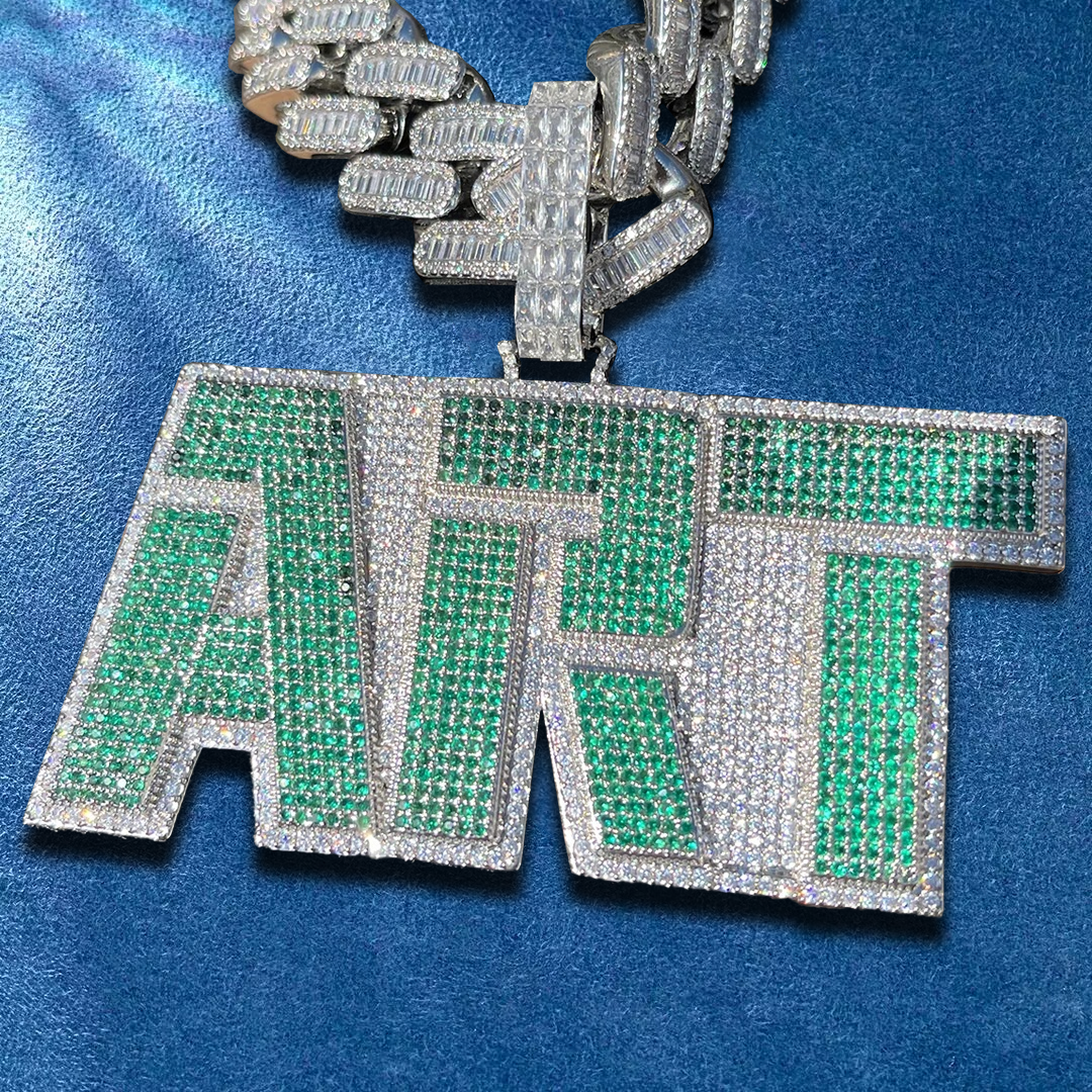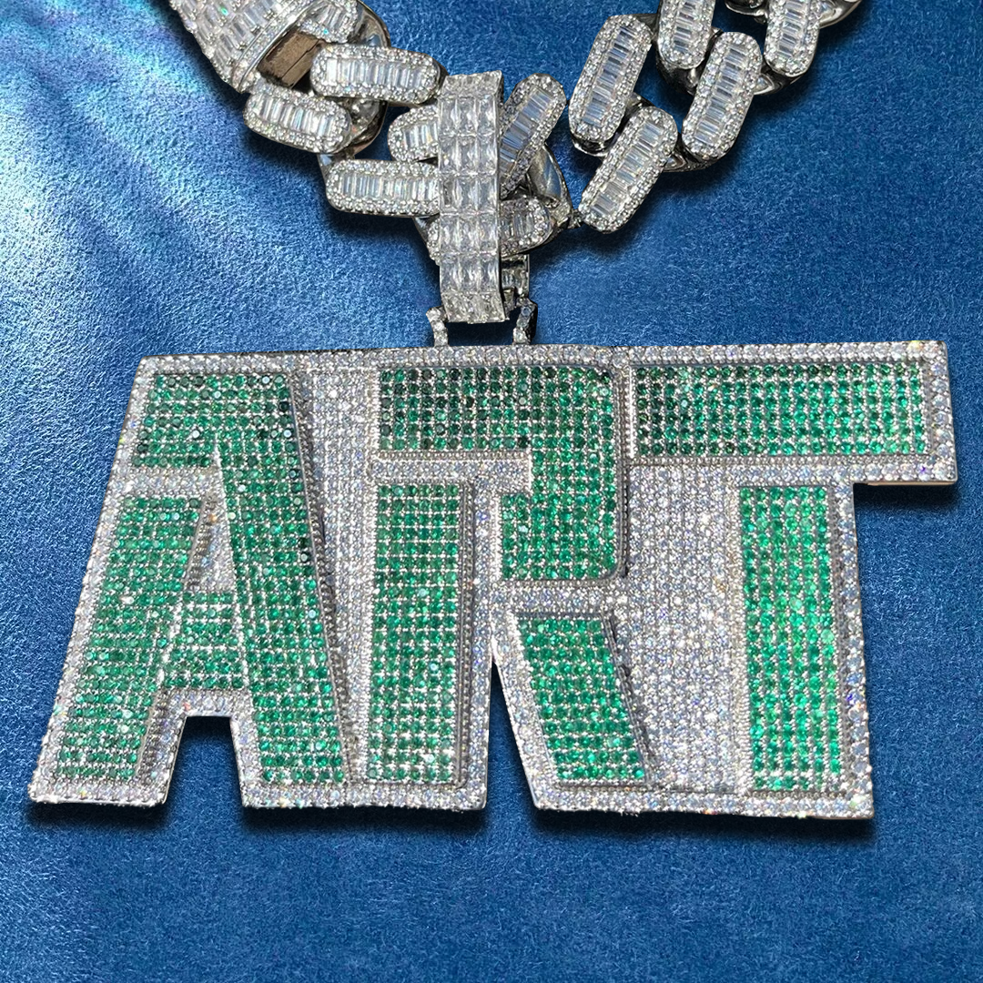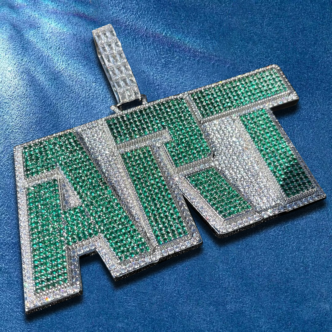 Custom Iced Out Two Layer Emerald Colorful Letter Hip Hop Pendant