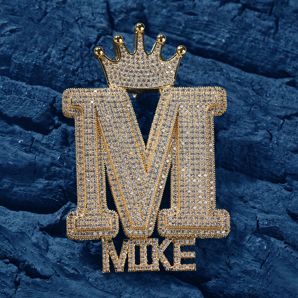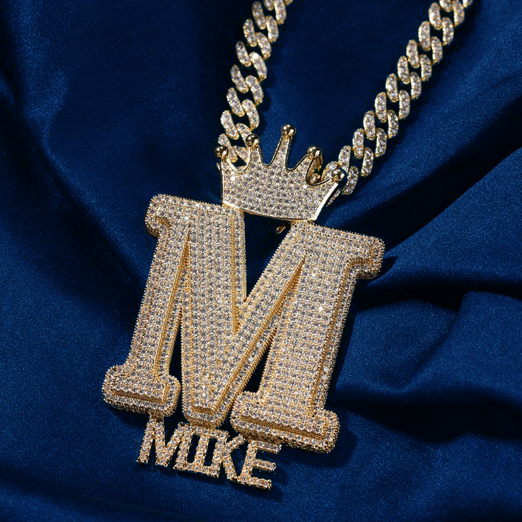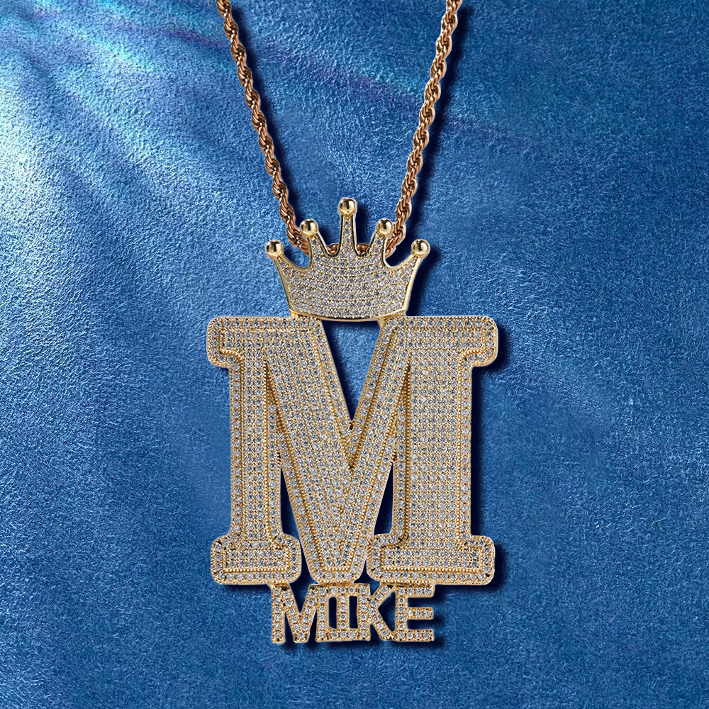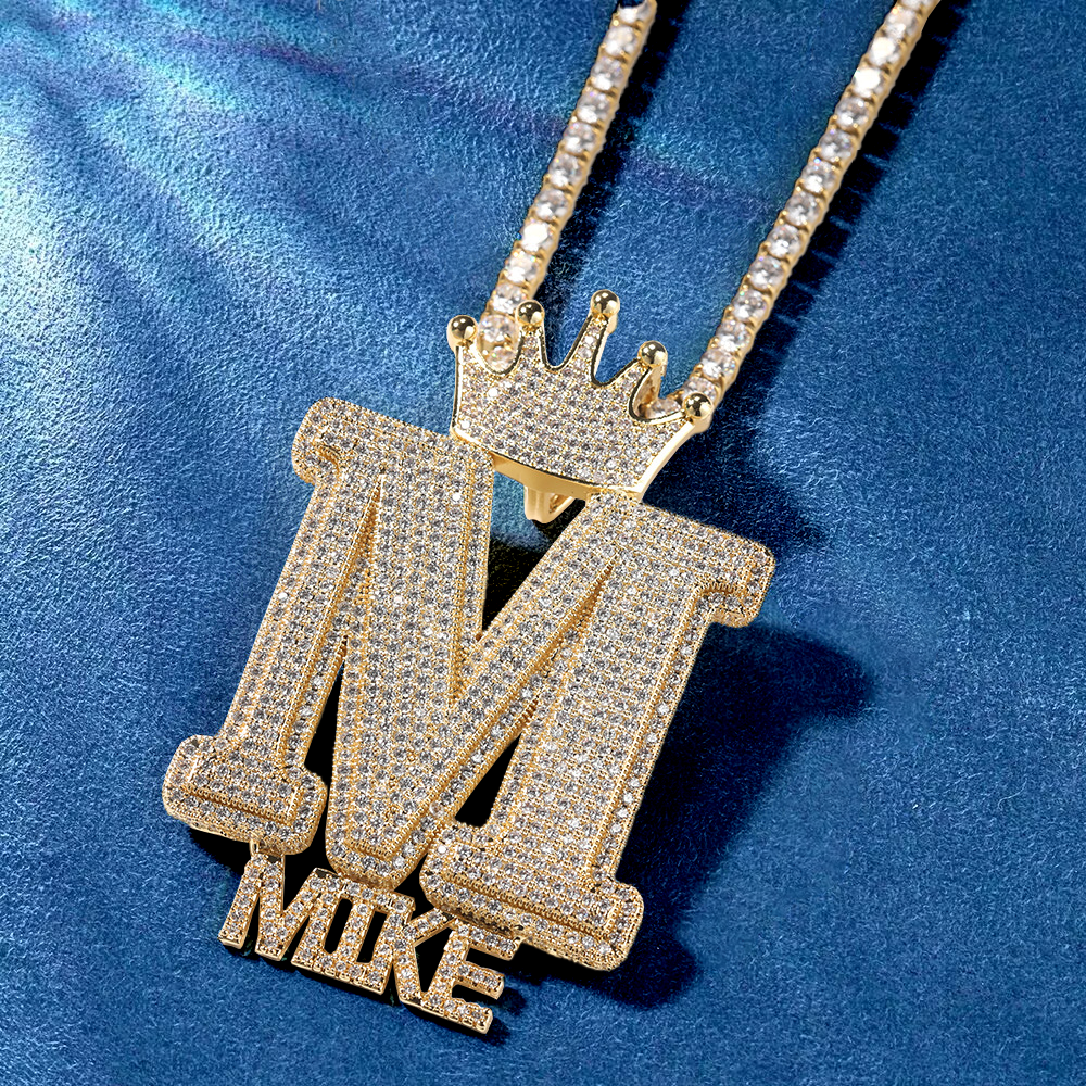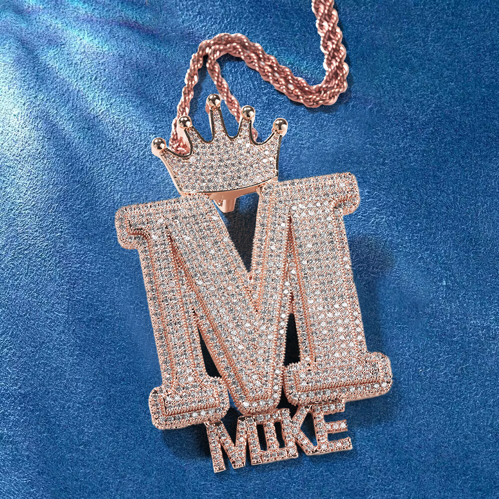 Custom Iced Out Crown Bail Big Initial A-Z With Small Letters Pendant