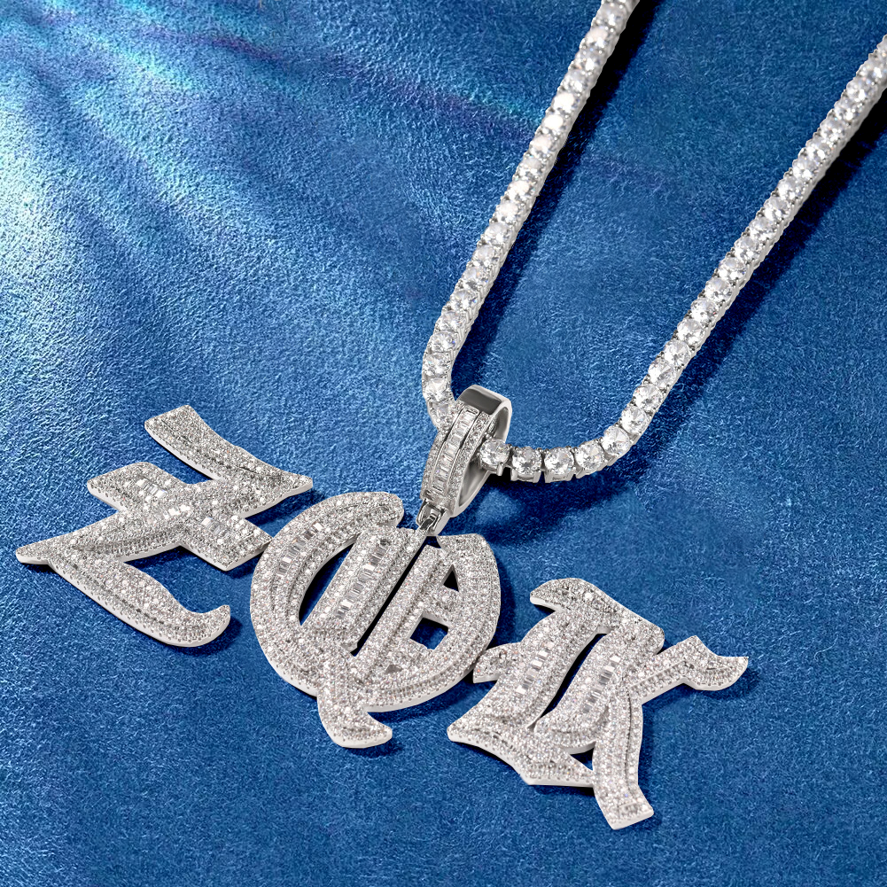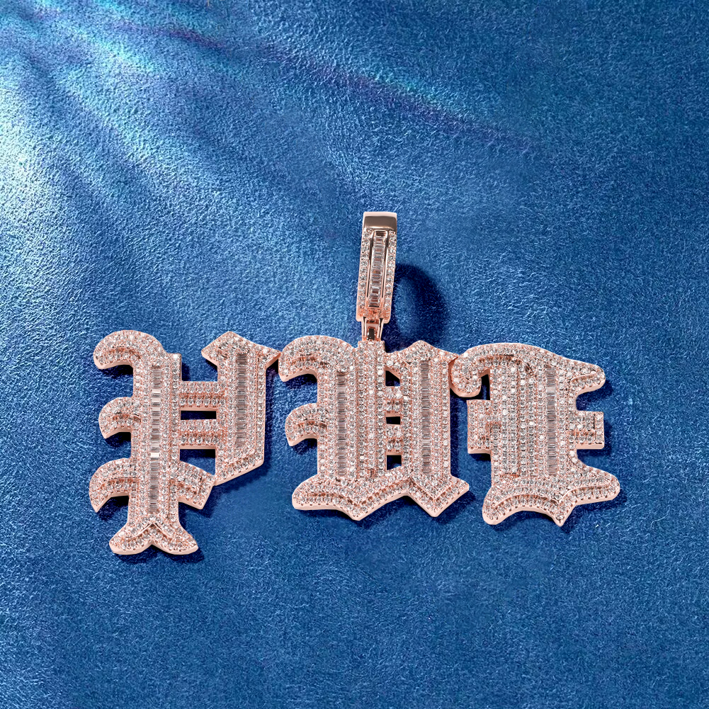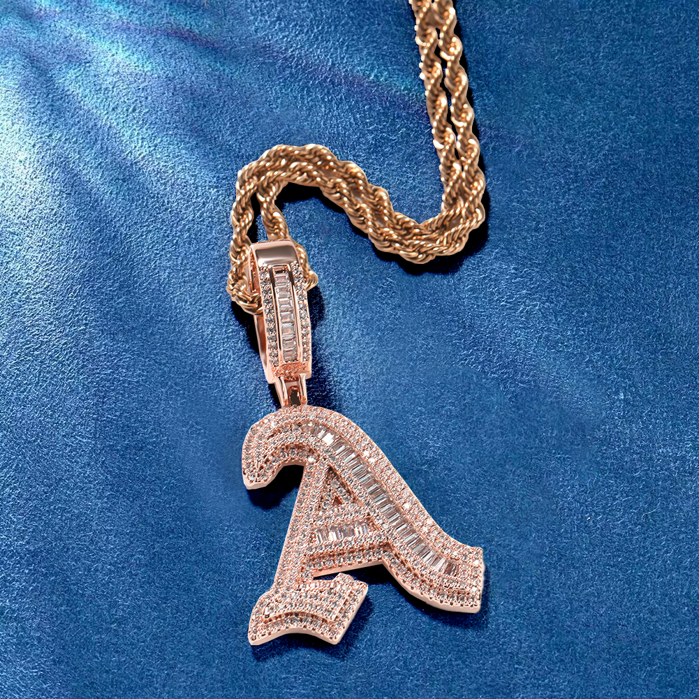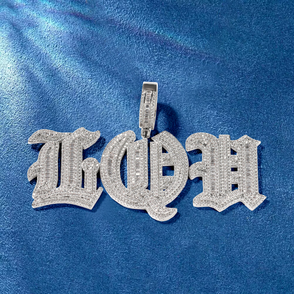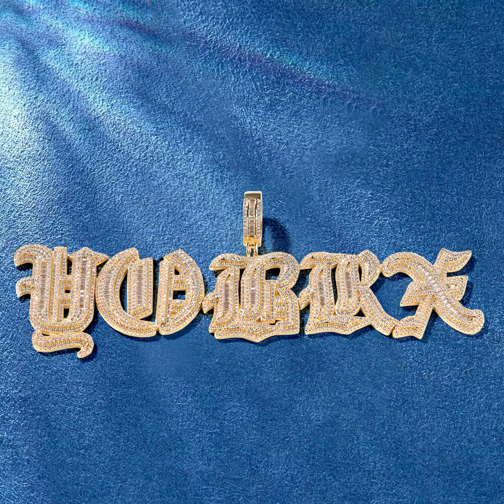 Custom Iced Out Old English Dazzle Baguette Letter Pendant