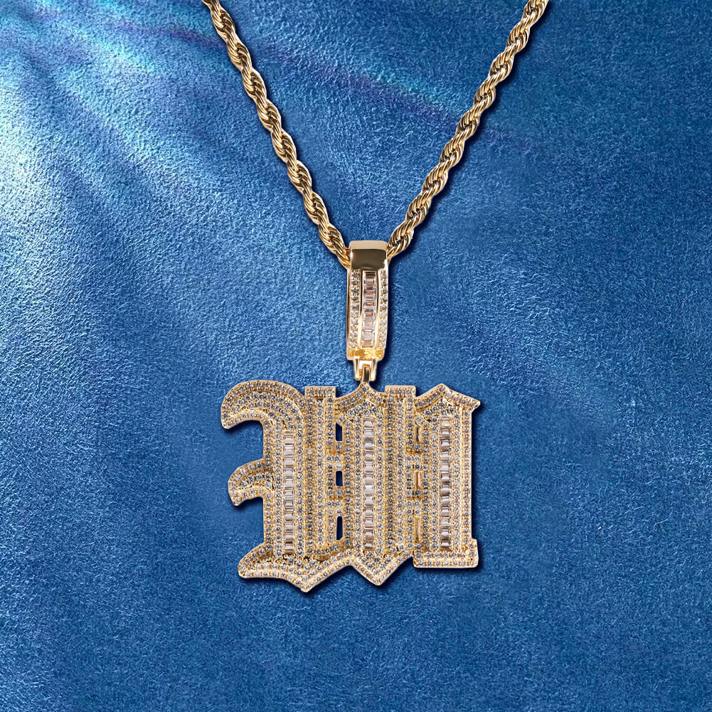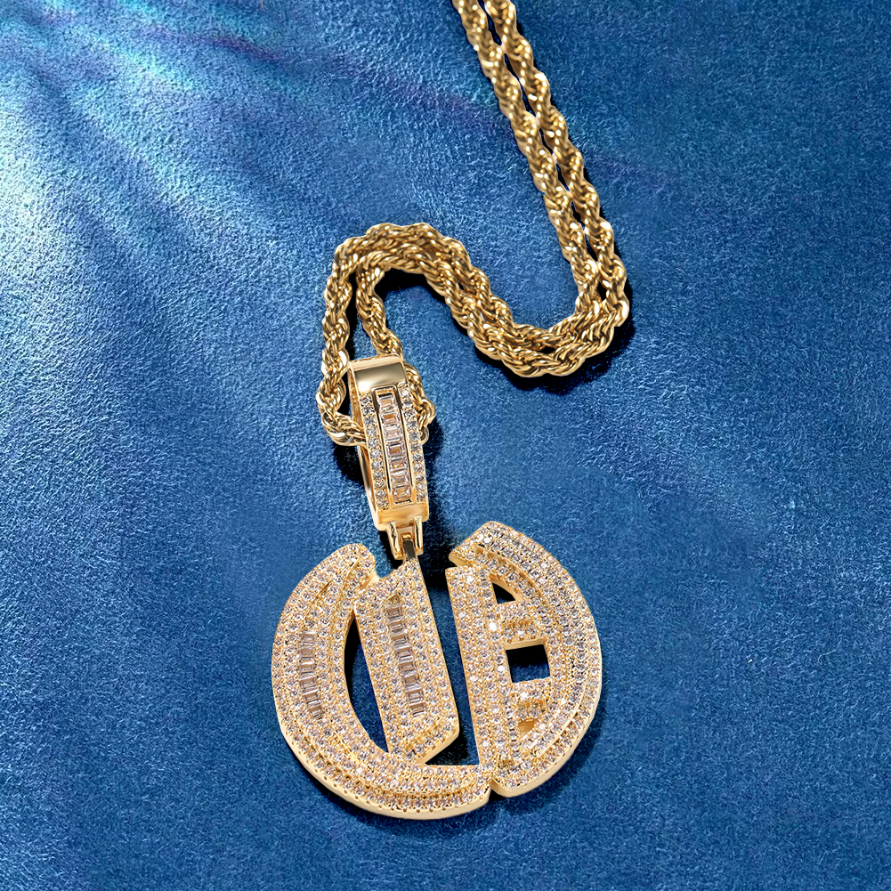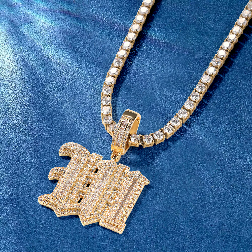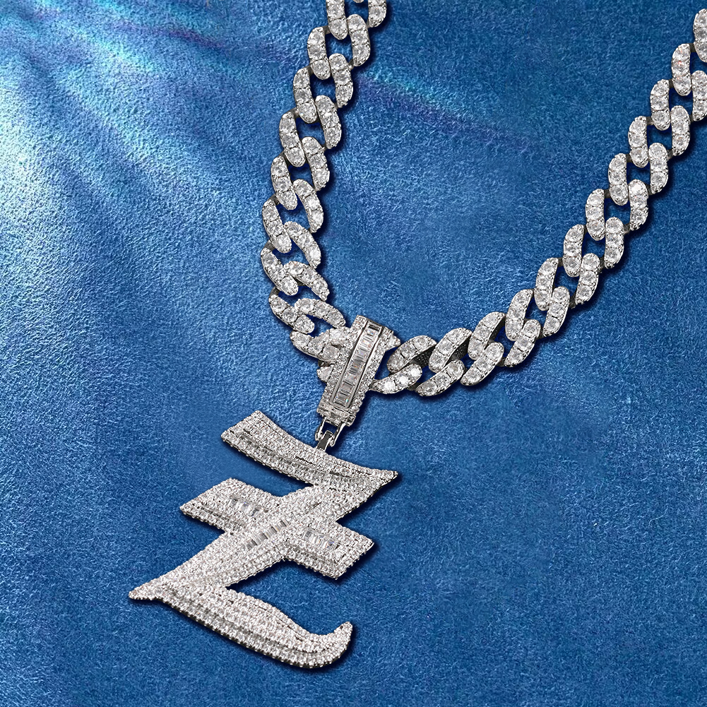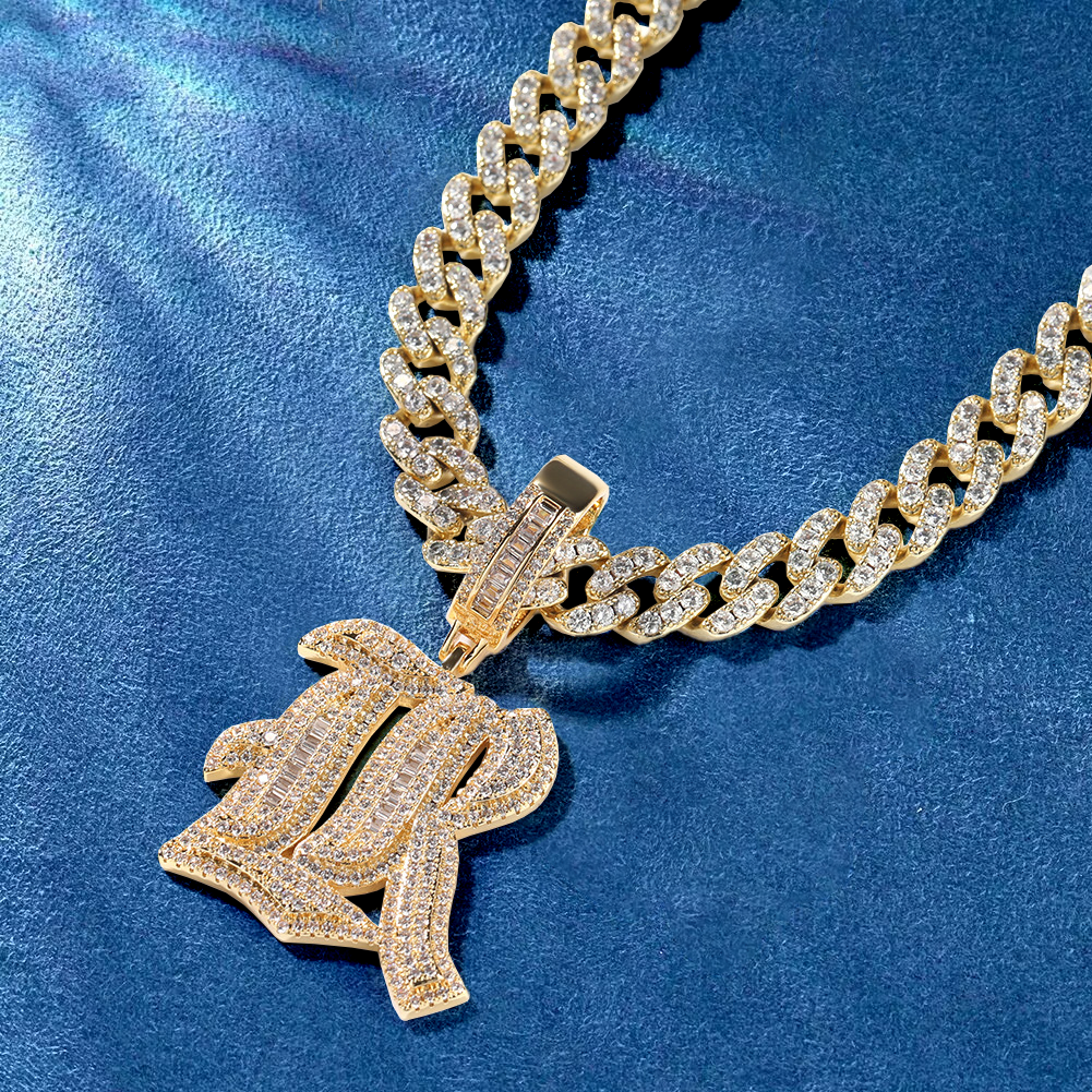 Custom Iced Out Old English Dazzle Baguette Letter Pendant