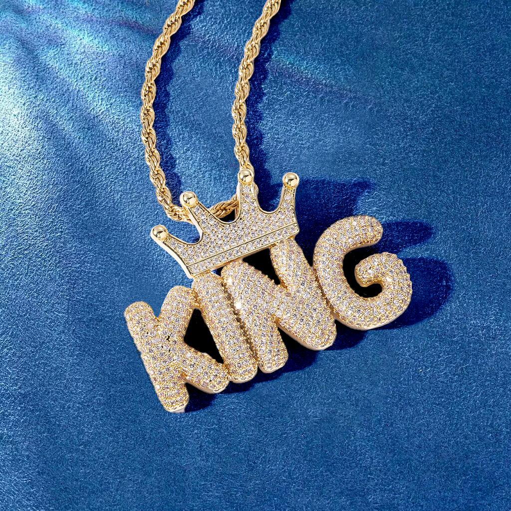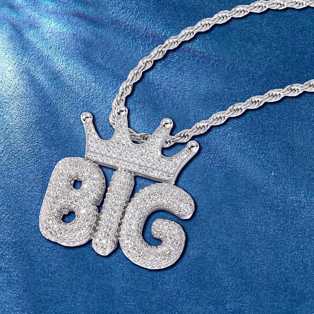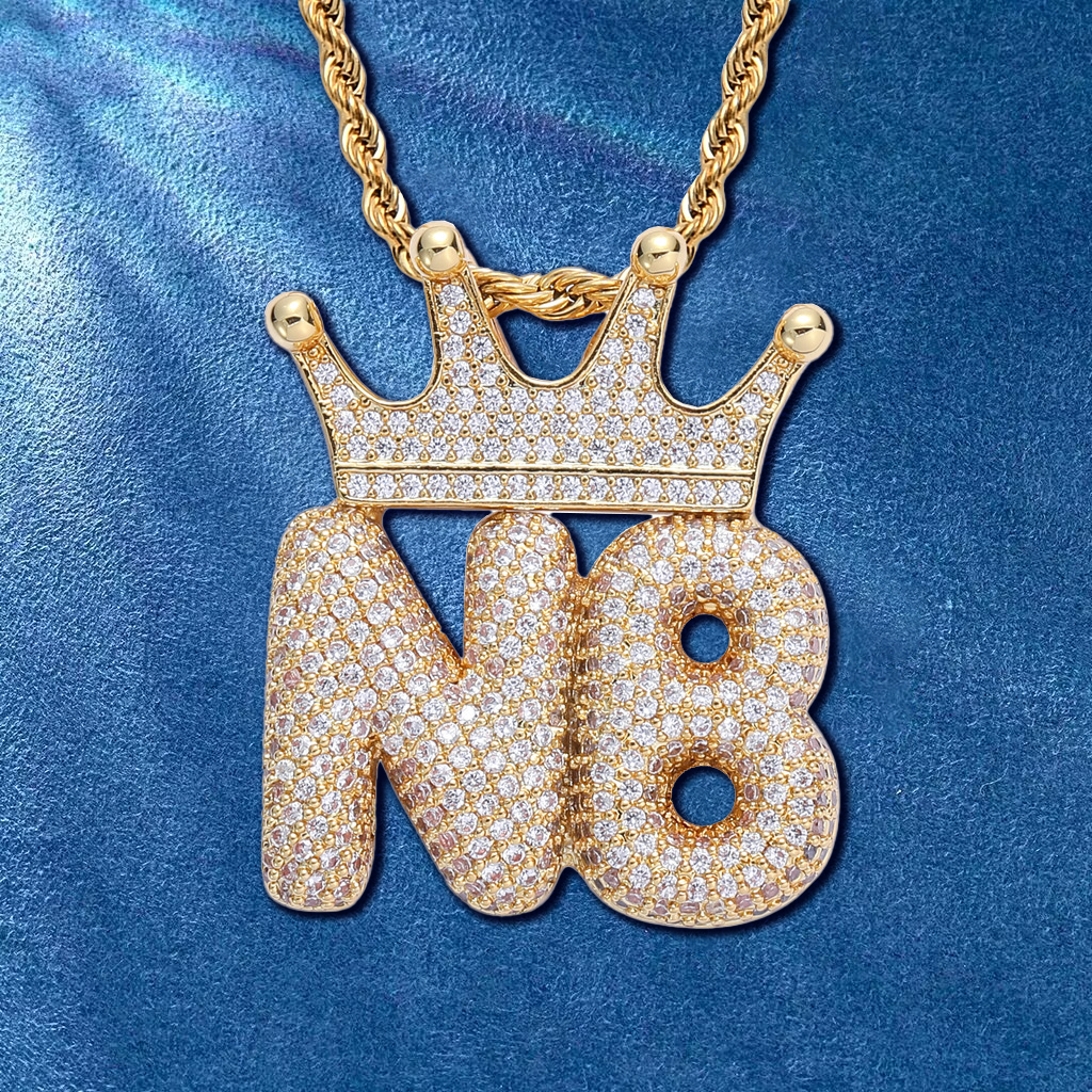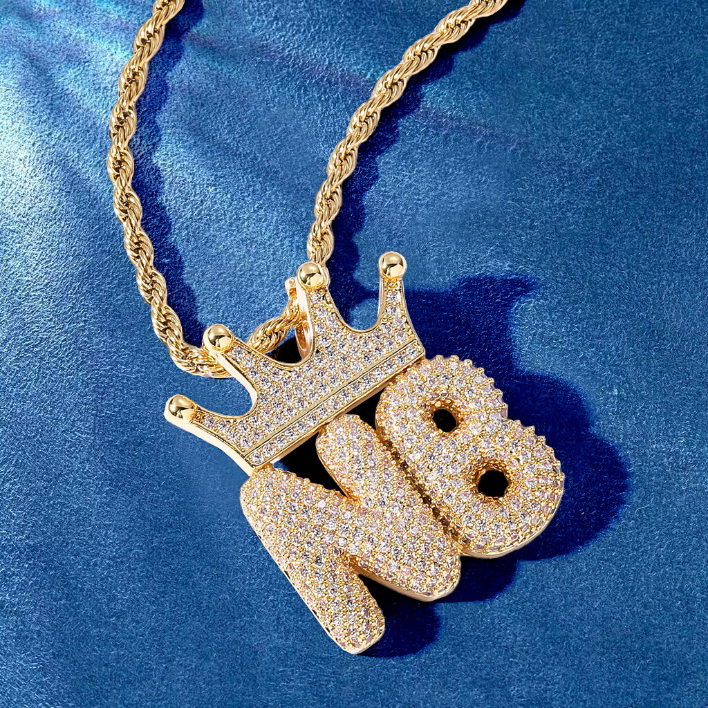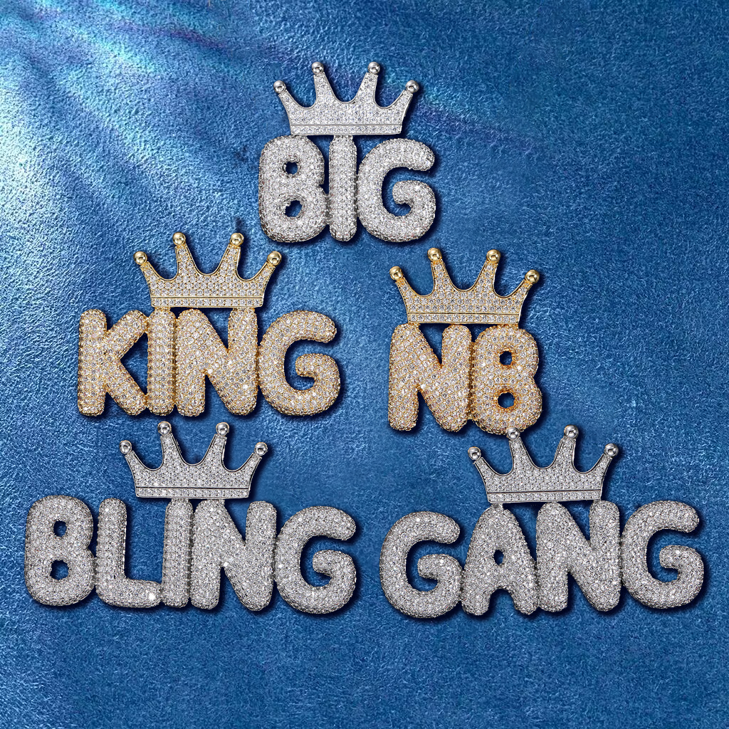 Personalized Crown Hip Hop Iced Out Bubble Letter Pendant