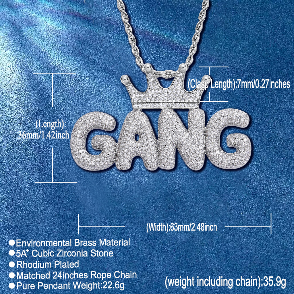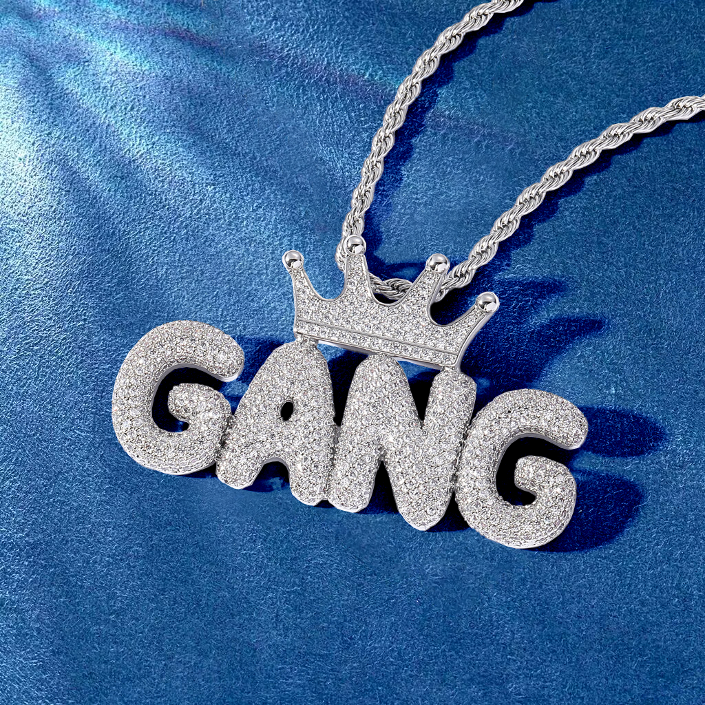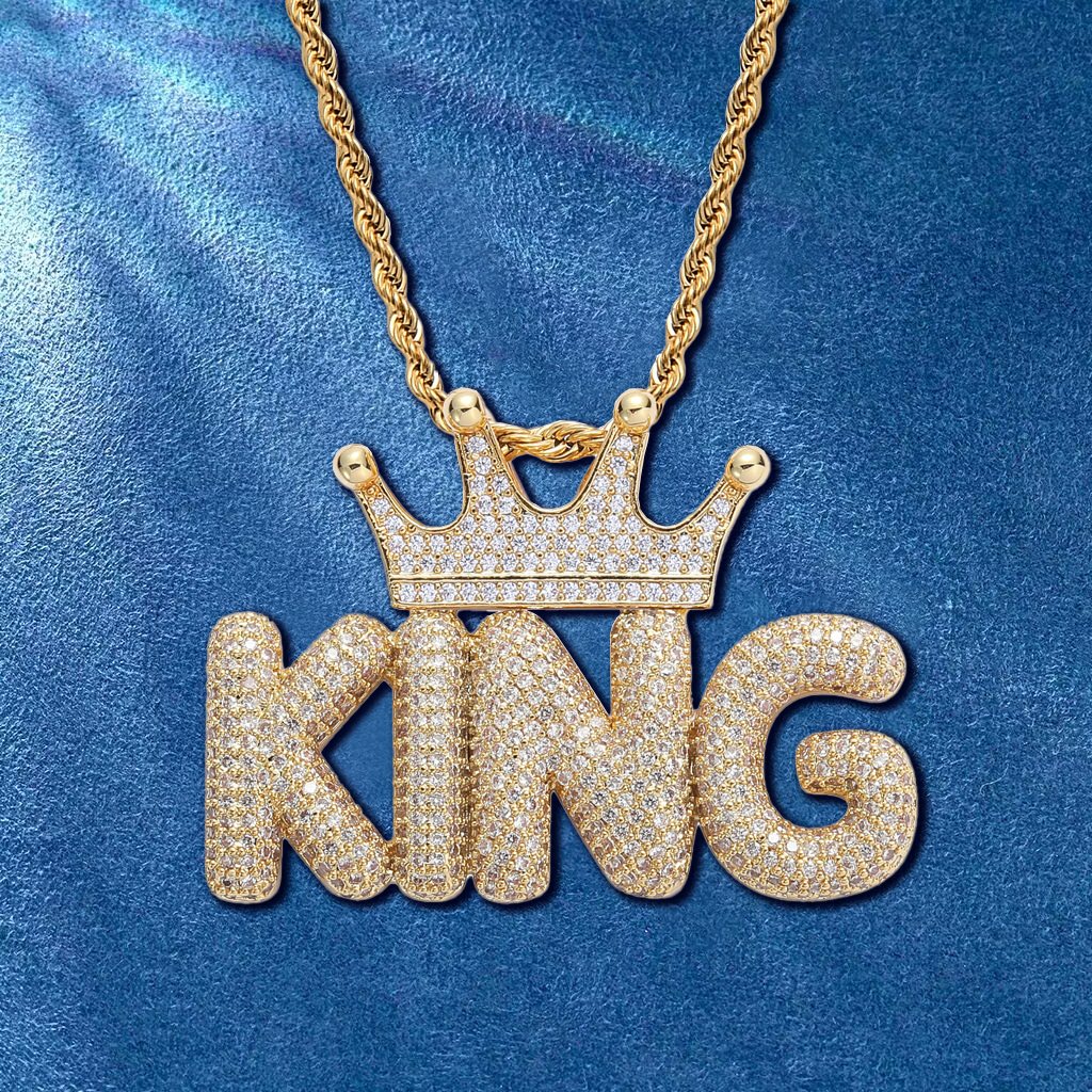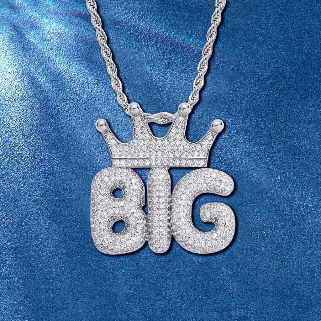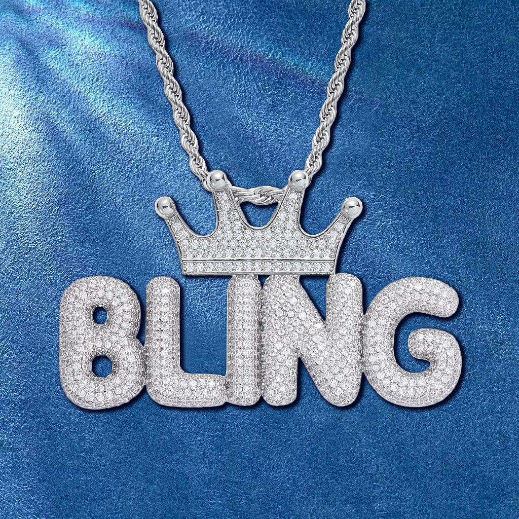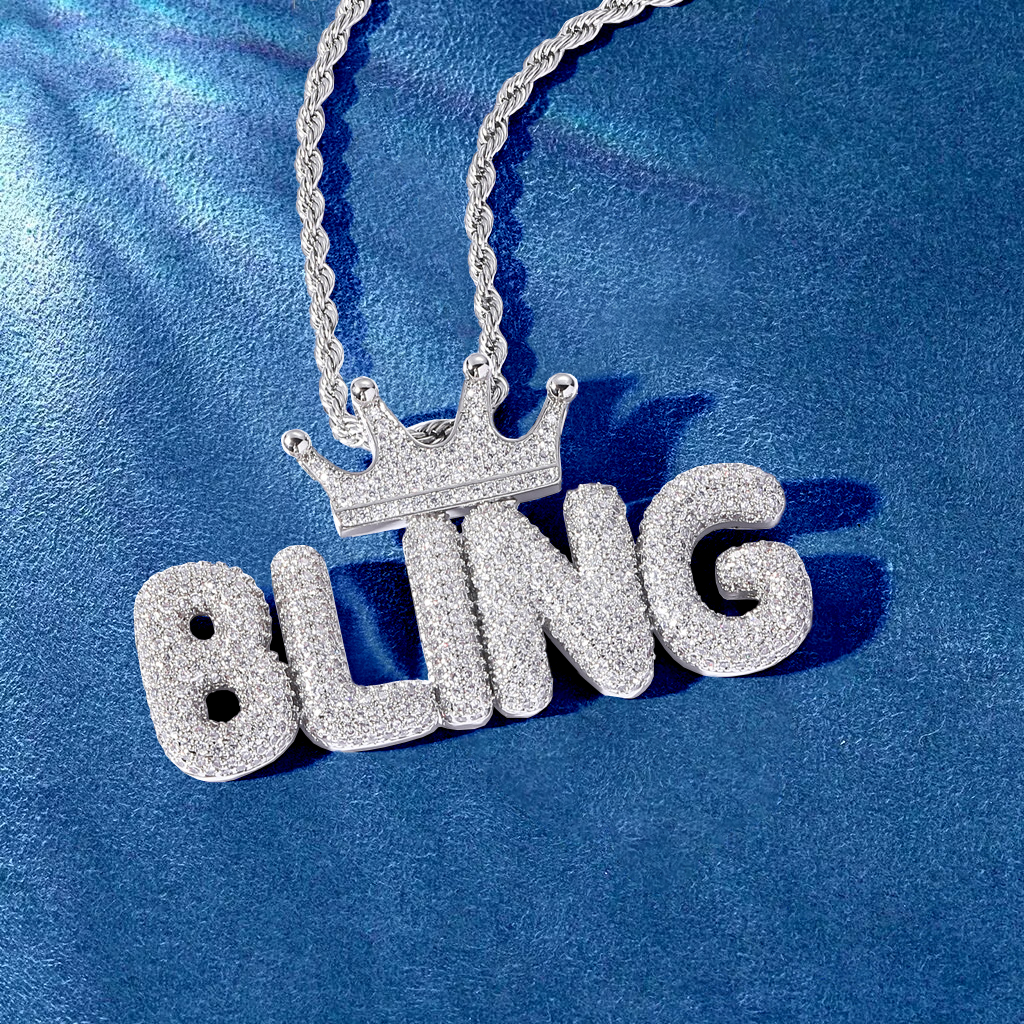 Personalized Crown Hip Hop Iced Out Bubble Letter Pendant