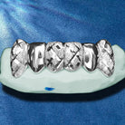 Custom Fit 925 Sterling Silver Grillz with Real Diamond Dust - Diamond Cut Teeth Jewelry