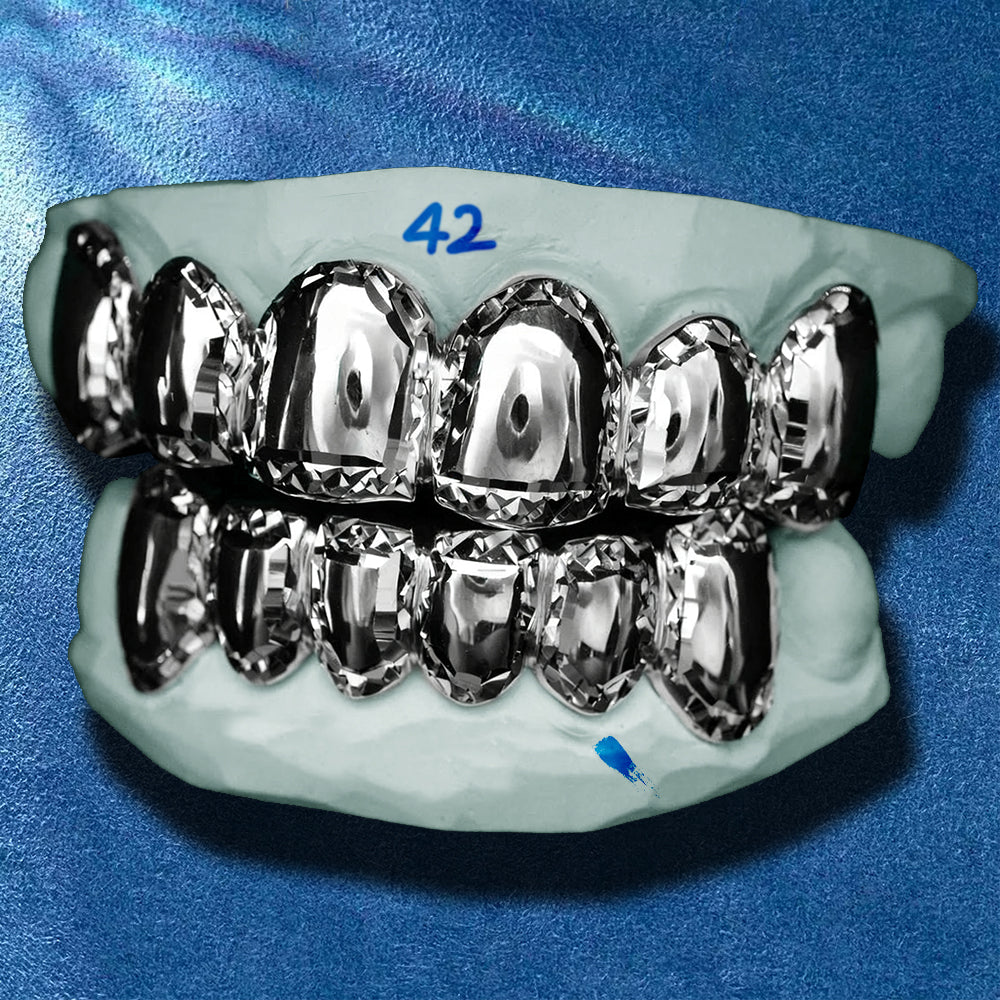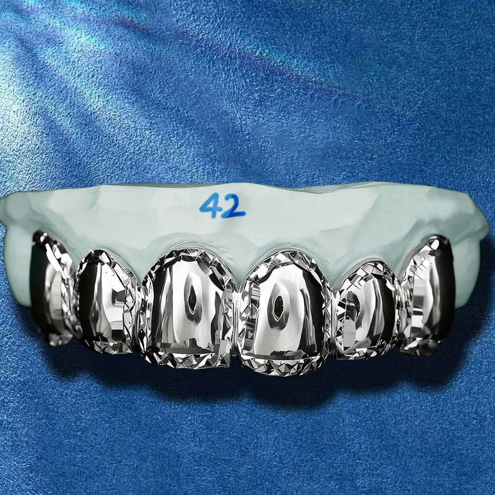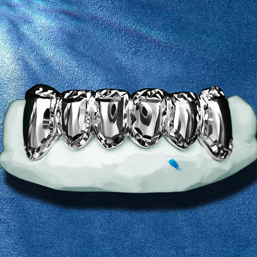 Icy Diamond Cut Silver Grillz - Custom 925 Sterling Silver Teeth for Men & Women