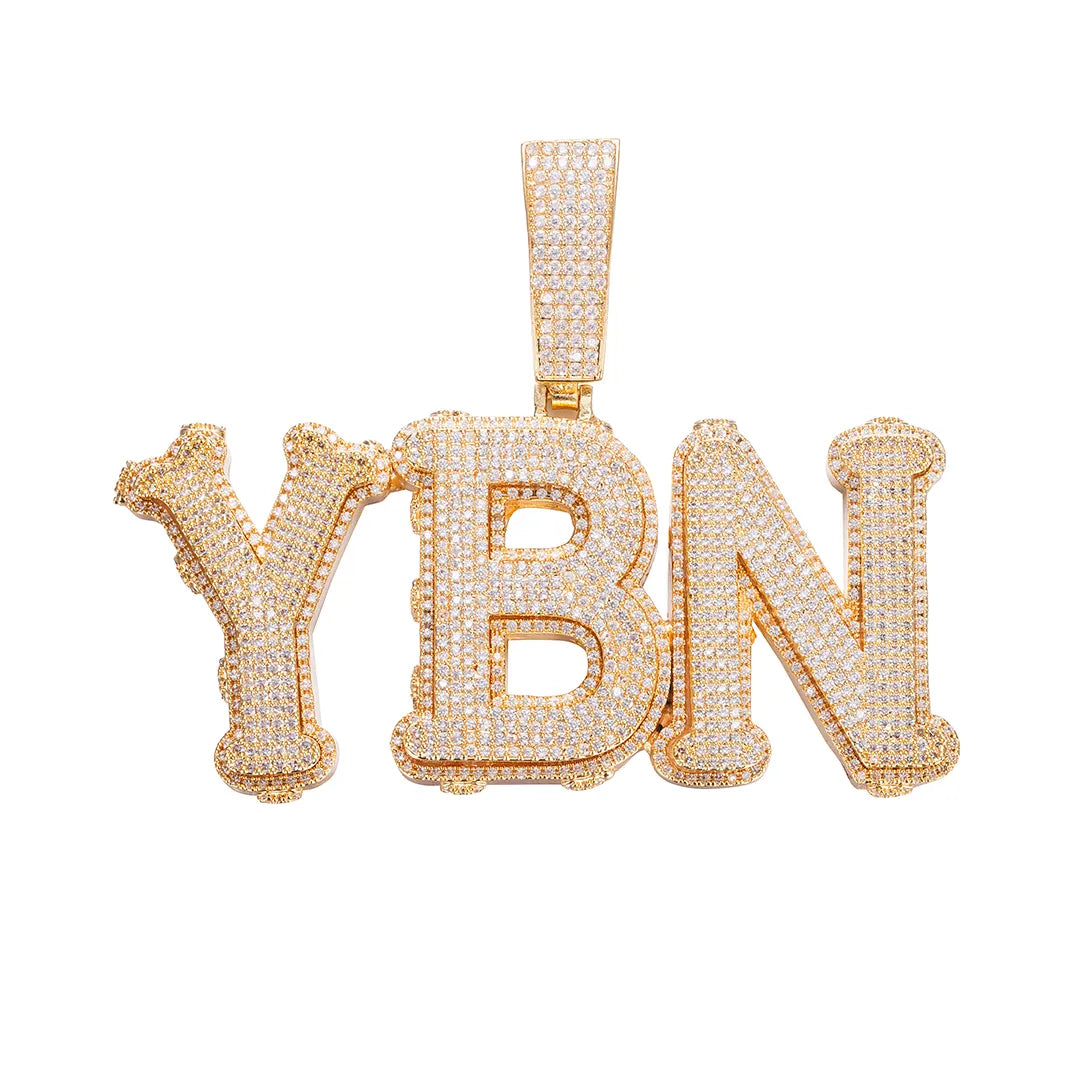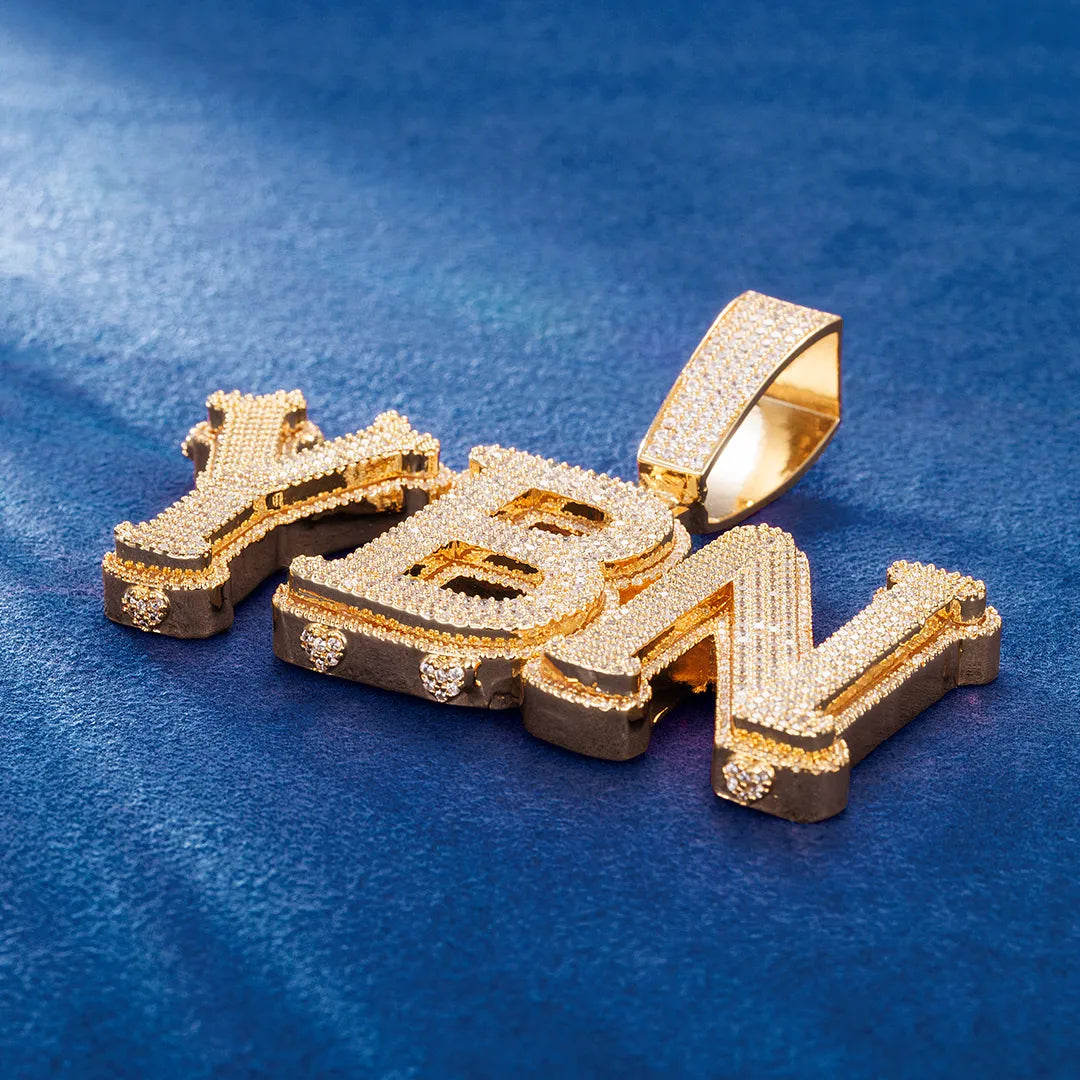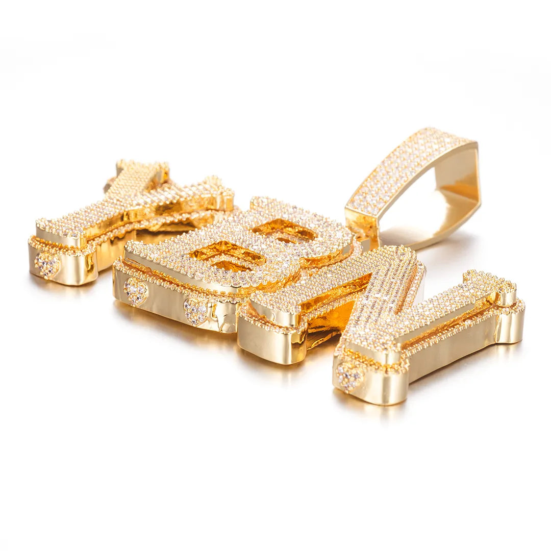 Custom Name Iced Out Heart Side Letter Pendant Rapper Hip Hop Jewelry