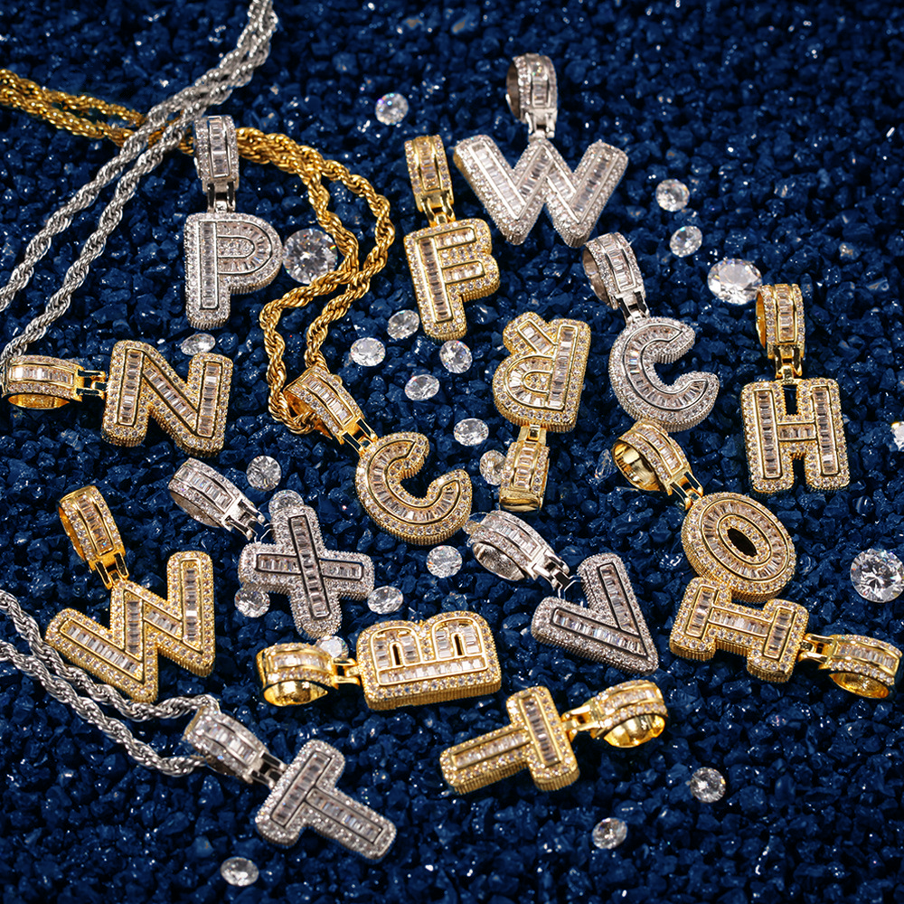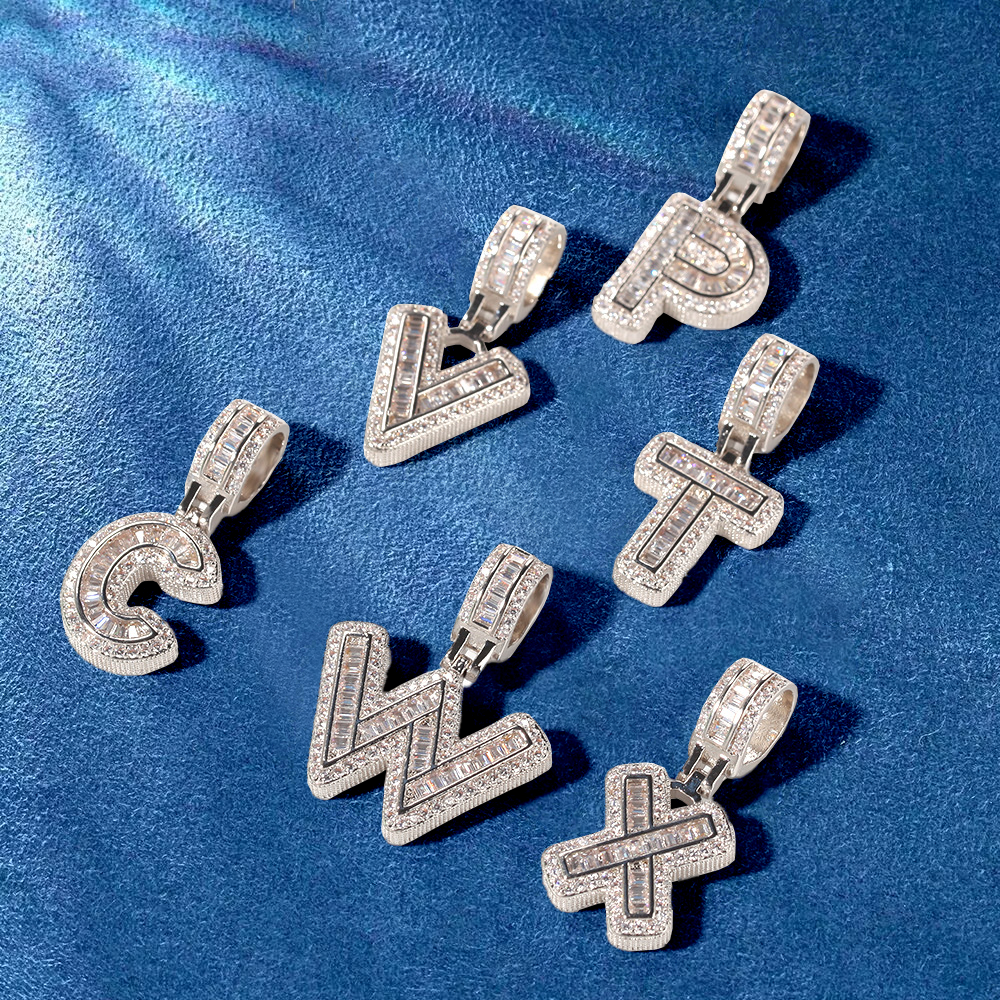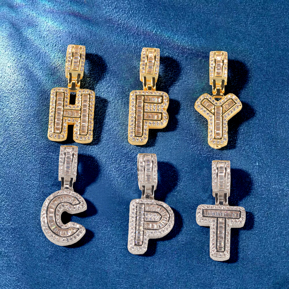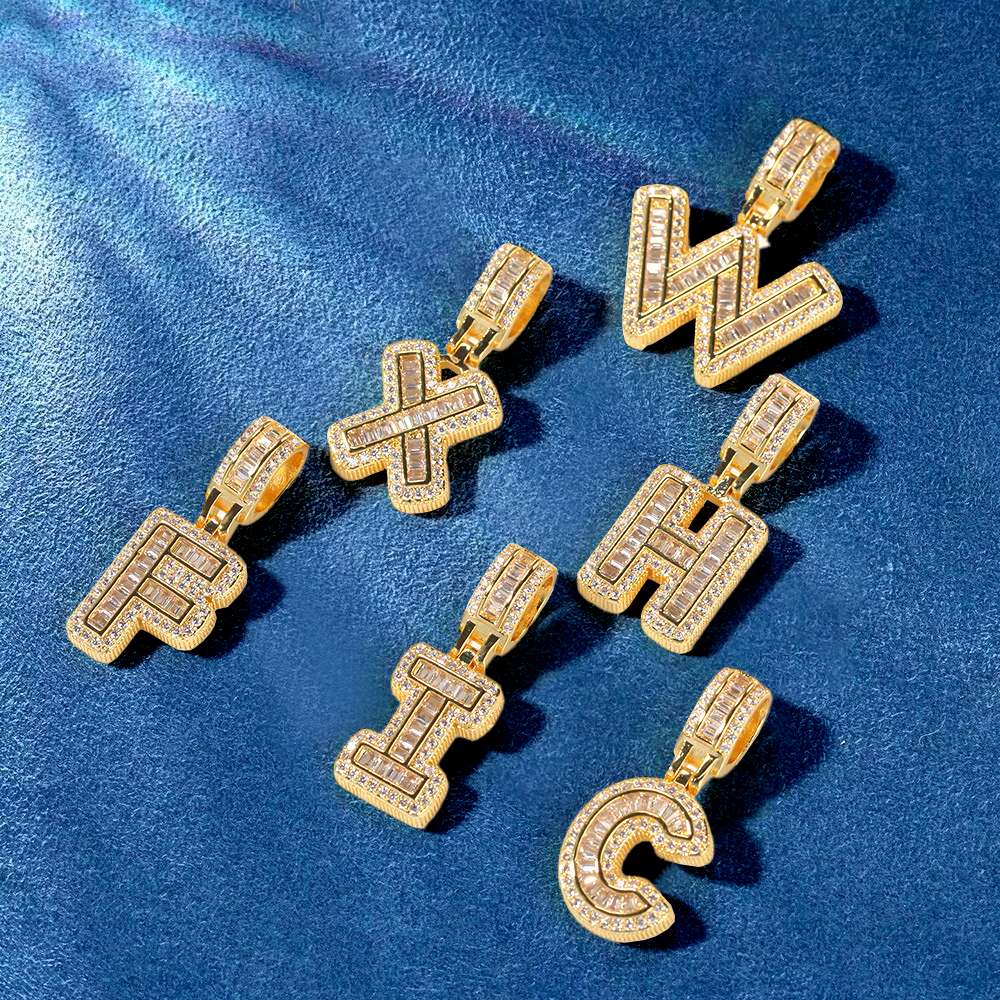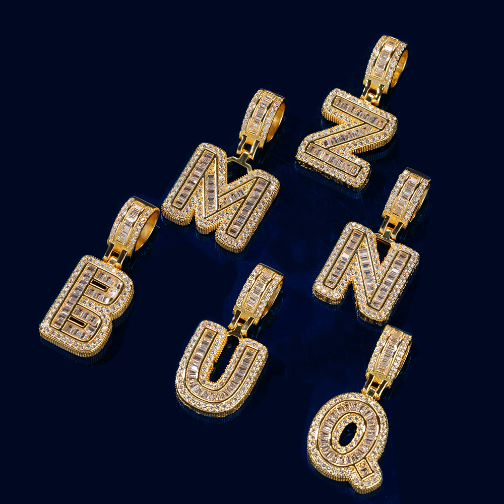 Custom Iced Out Initial Alphabet A-Z Baguette Letter Pendant