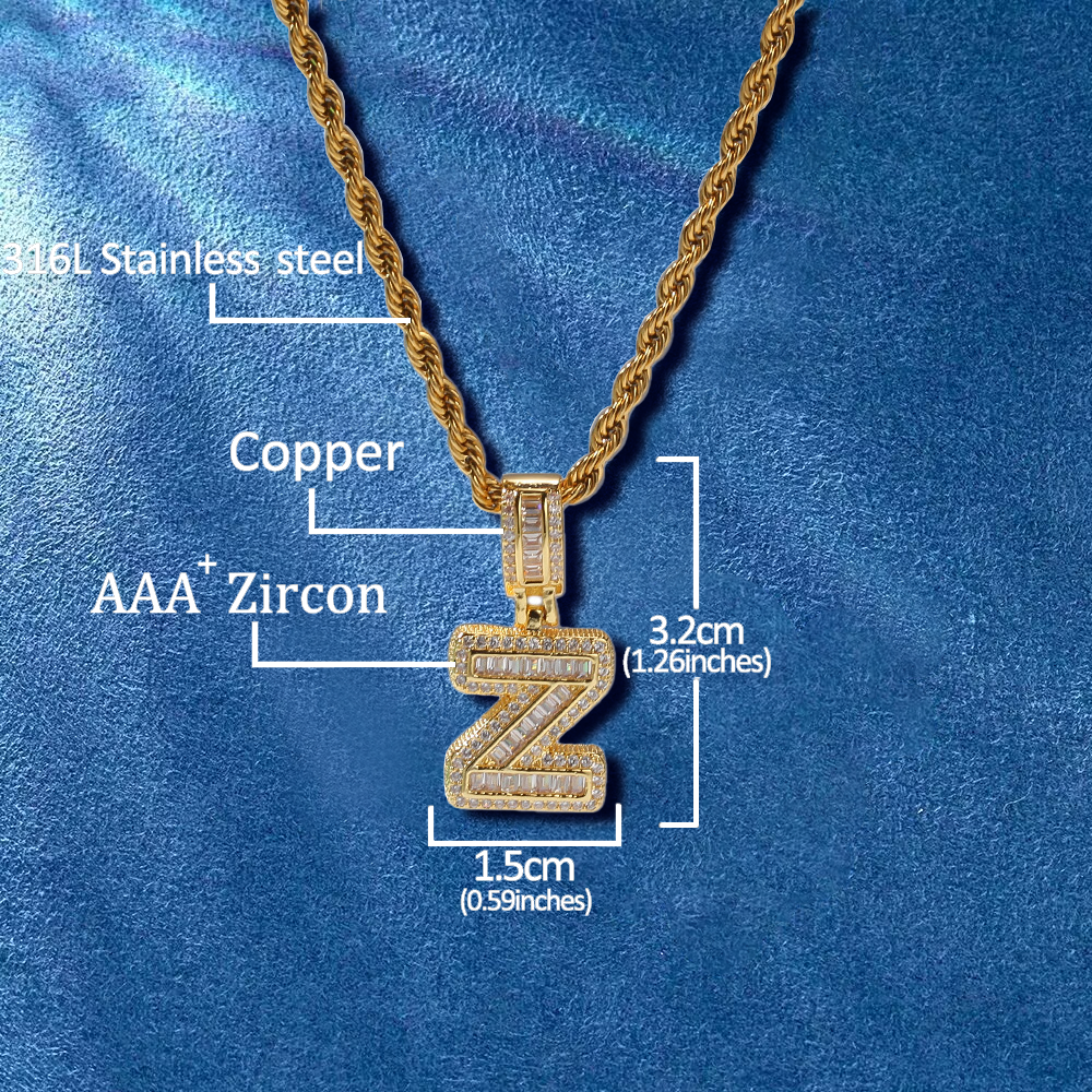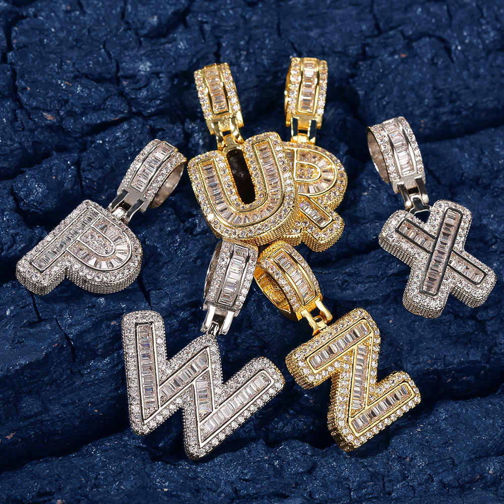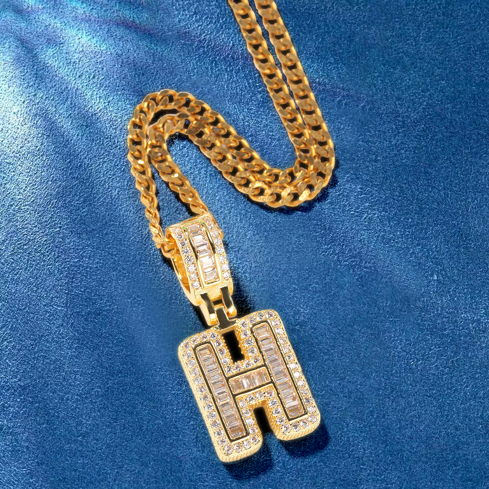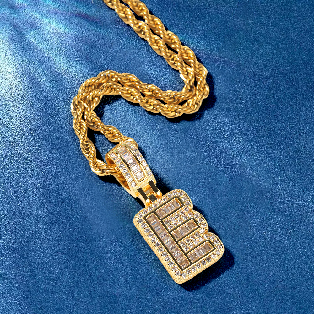 Custom Iced Out Initial Alphabet A-Z Baguette Letter Pendant