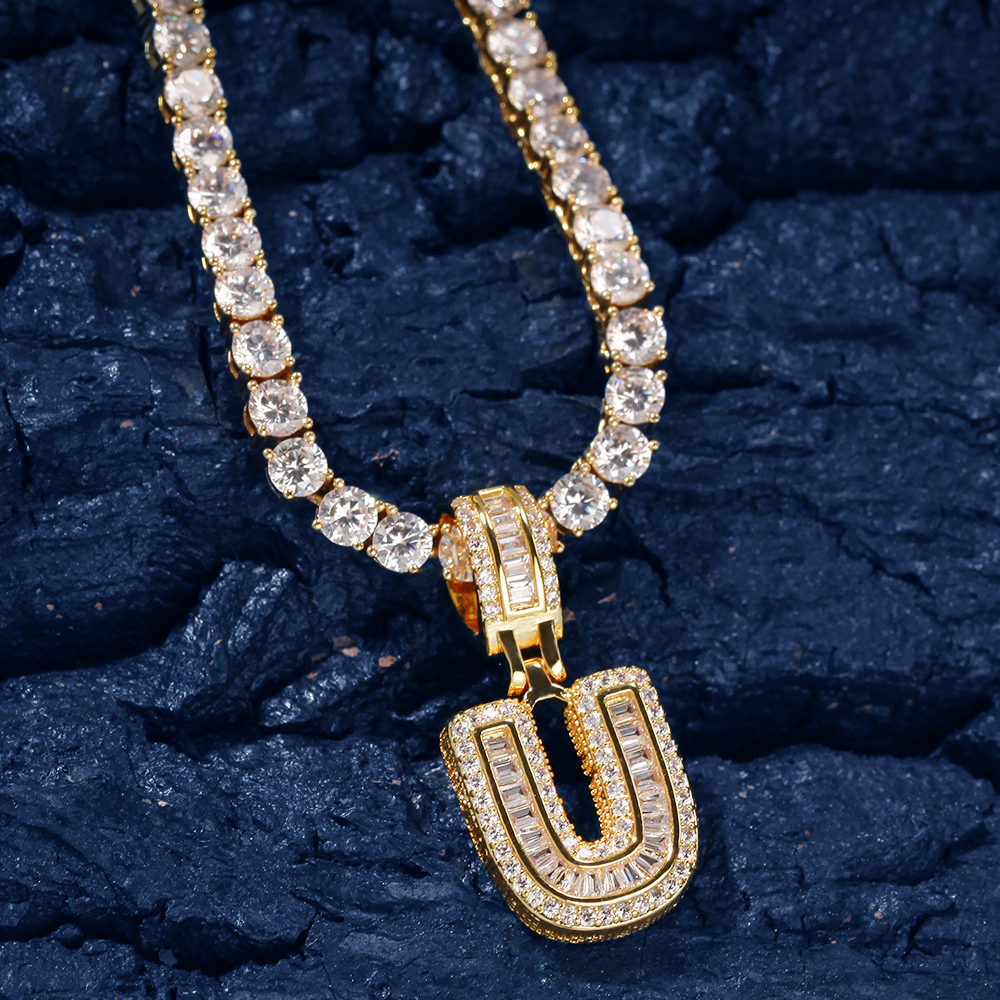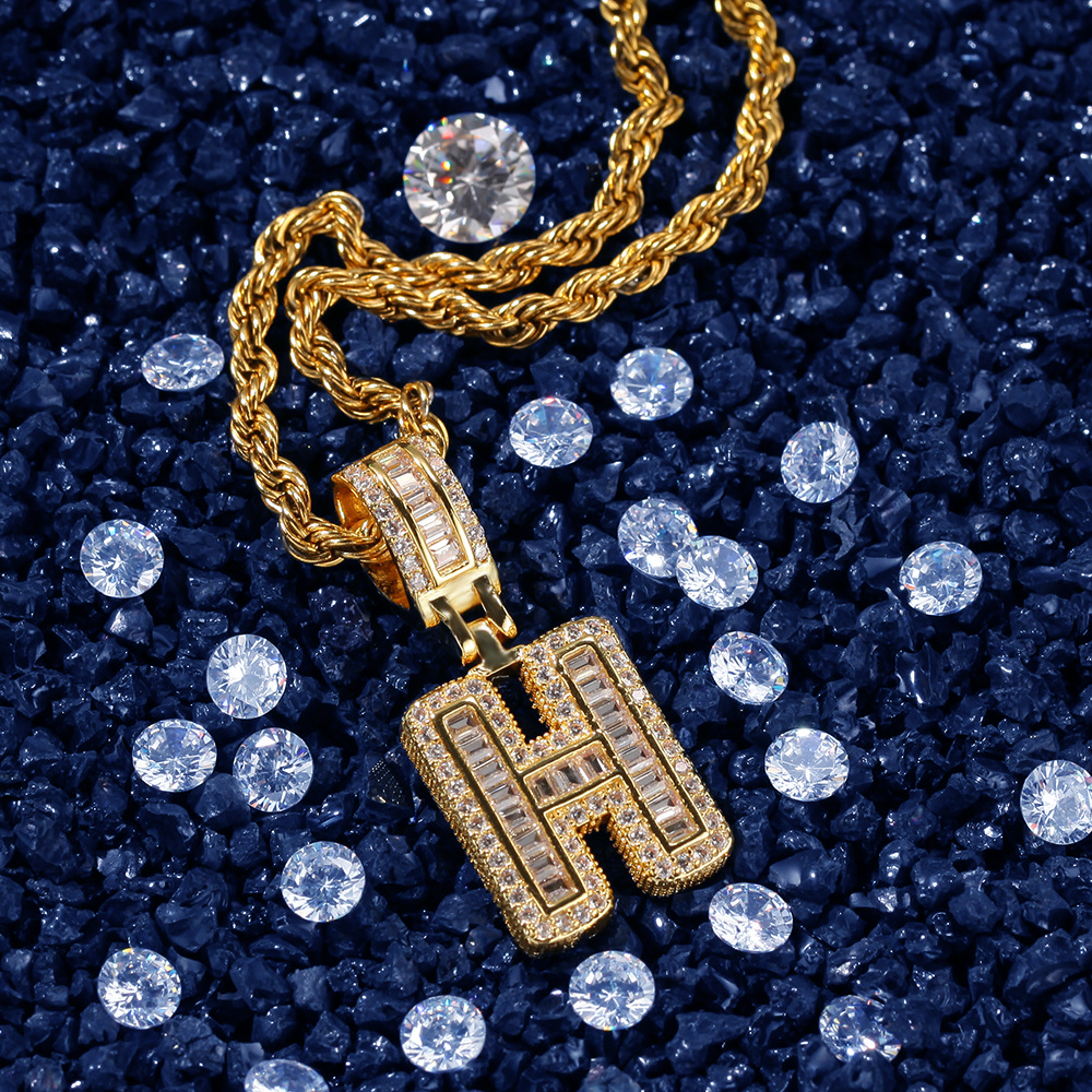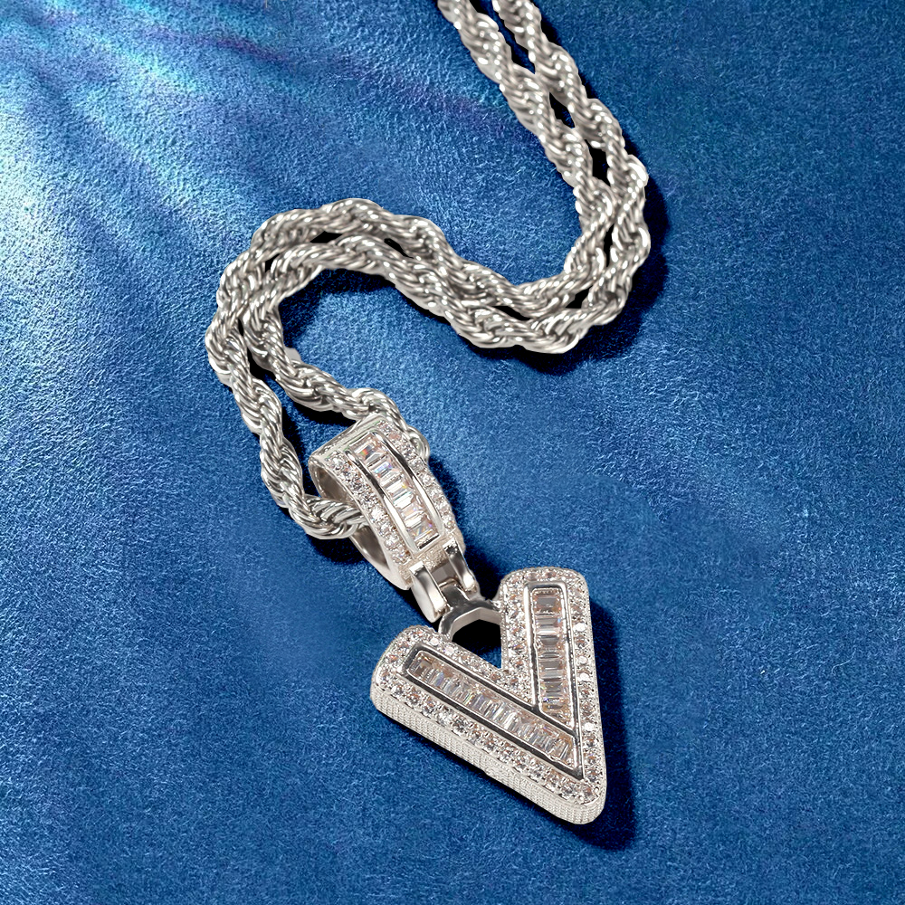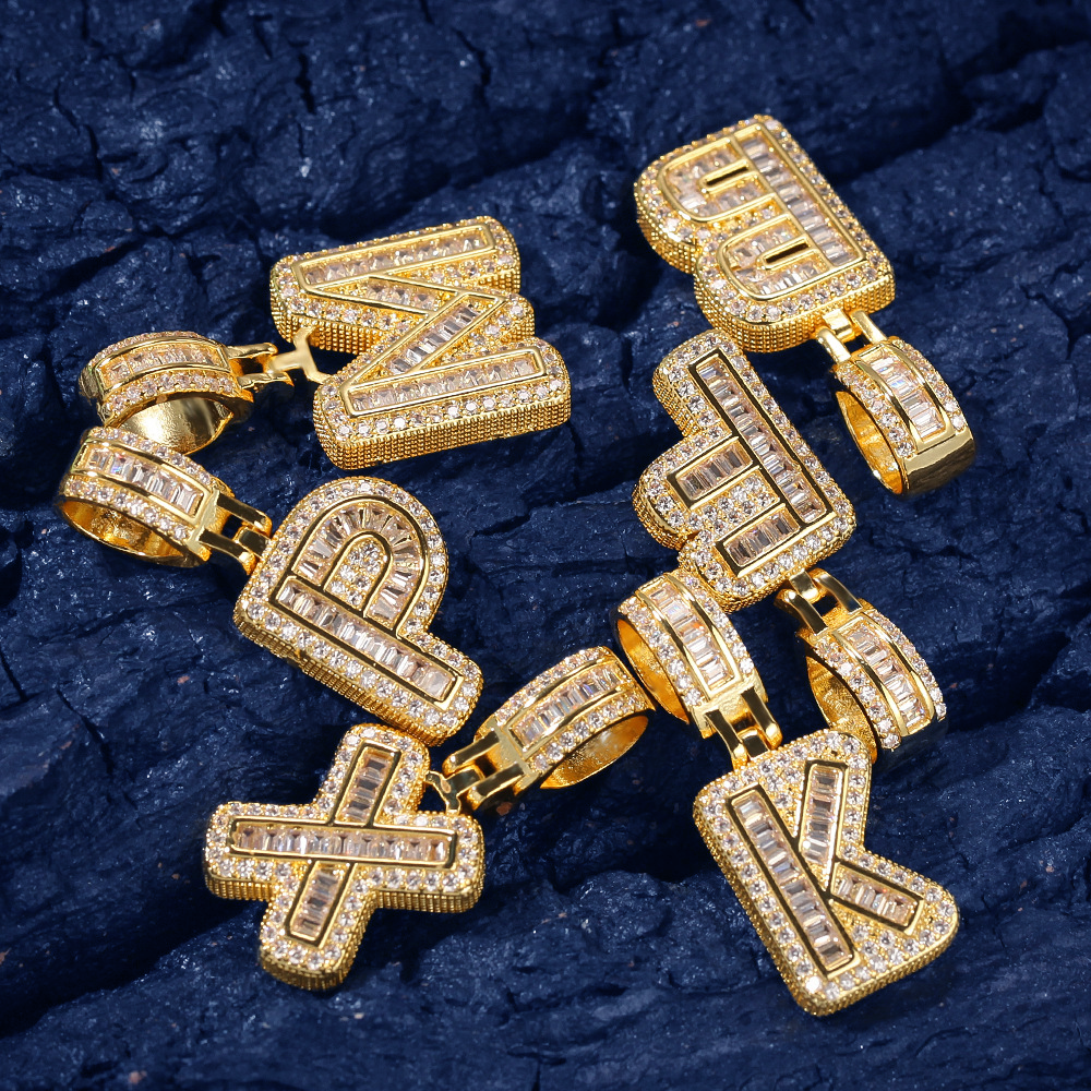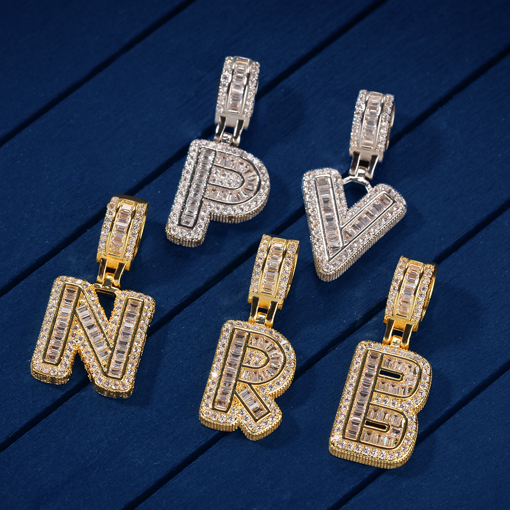 Custom Iced Out Initial Alphabet A-Z Baguette Letter Pendant
