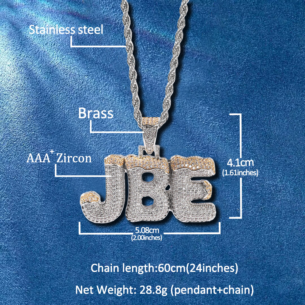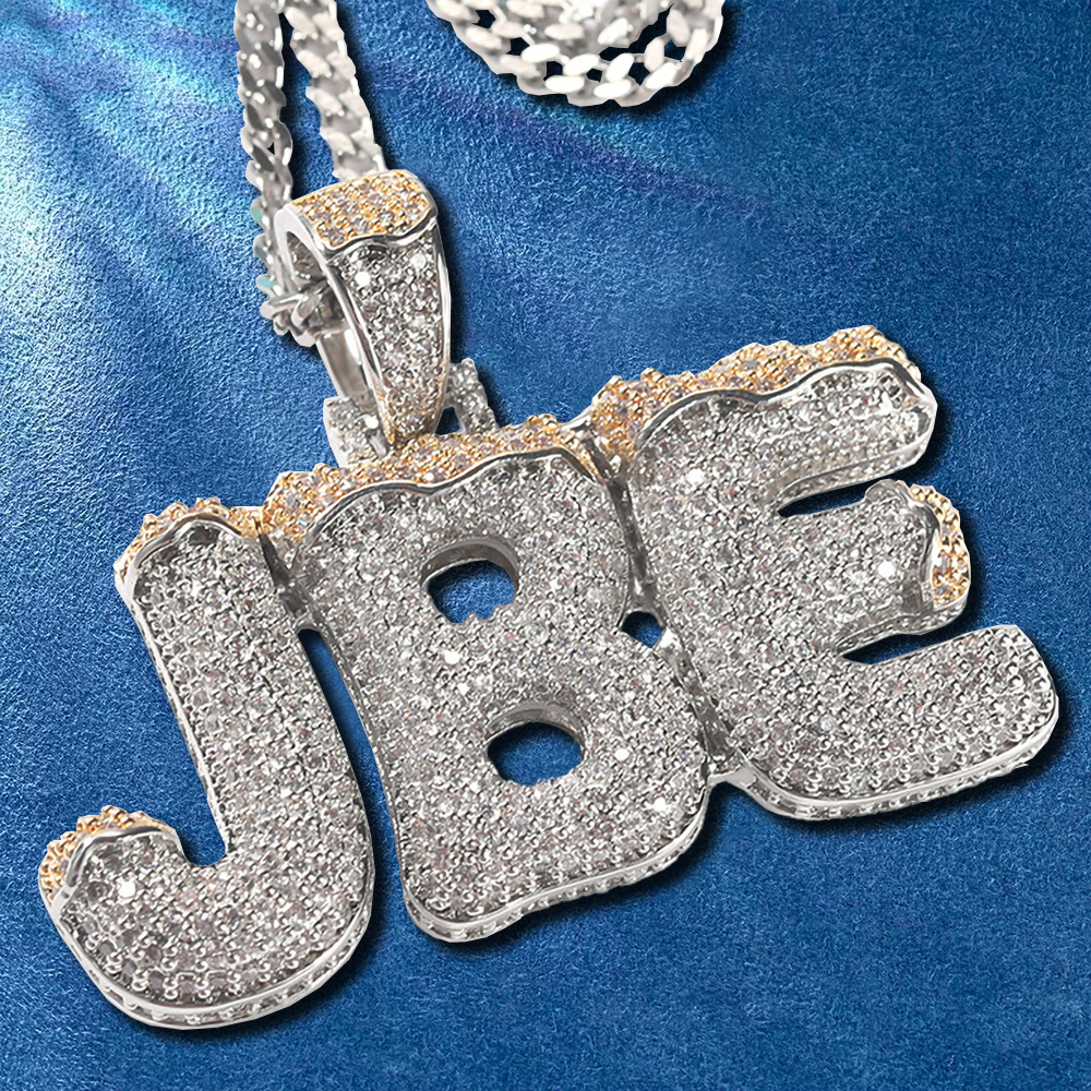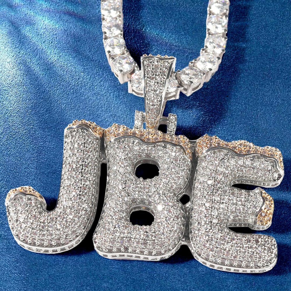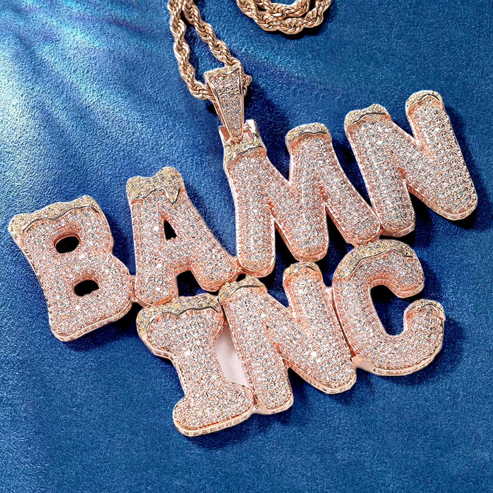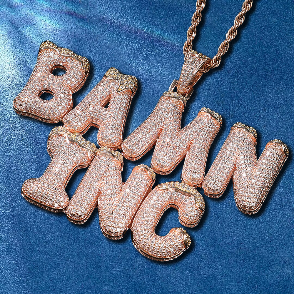Custom Iced Out Snow Top Cone Bubble Splicing Letter Pendant