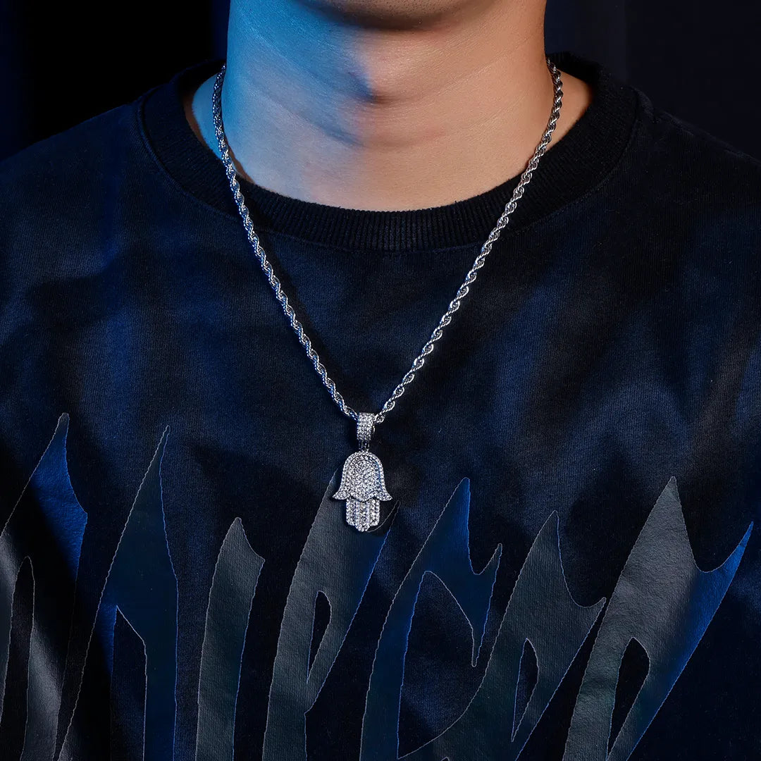 Traditionally believed to be a talisman against The Evil Eye, Hamsa is often used as an element in designing jewelry and interior decoration in ancient times.The Double-Layered Hamsa Pendant is entirely handcrafted with double layers of CZ stones, making it a classic must-have that will bring you powerful energy to protect you in this life full of uncertainty.