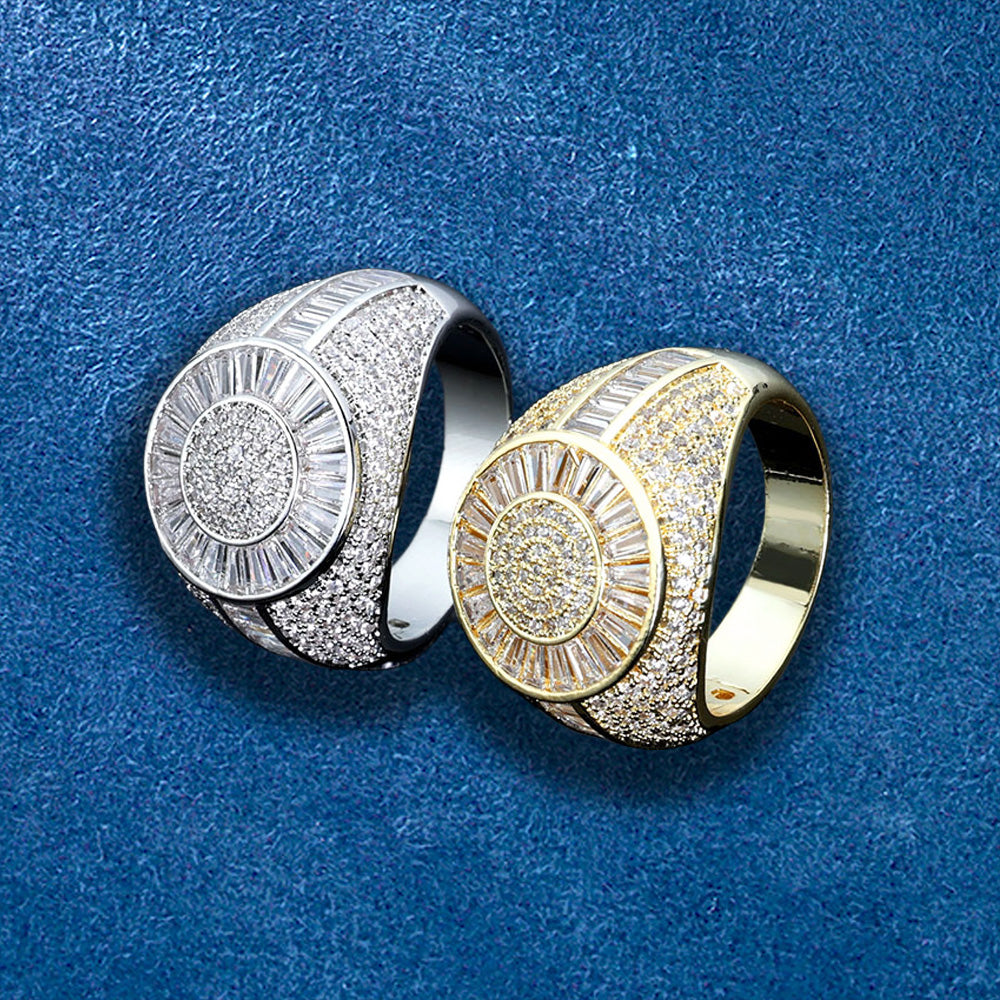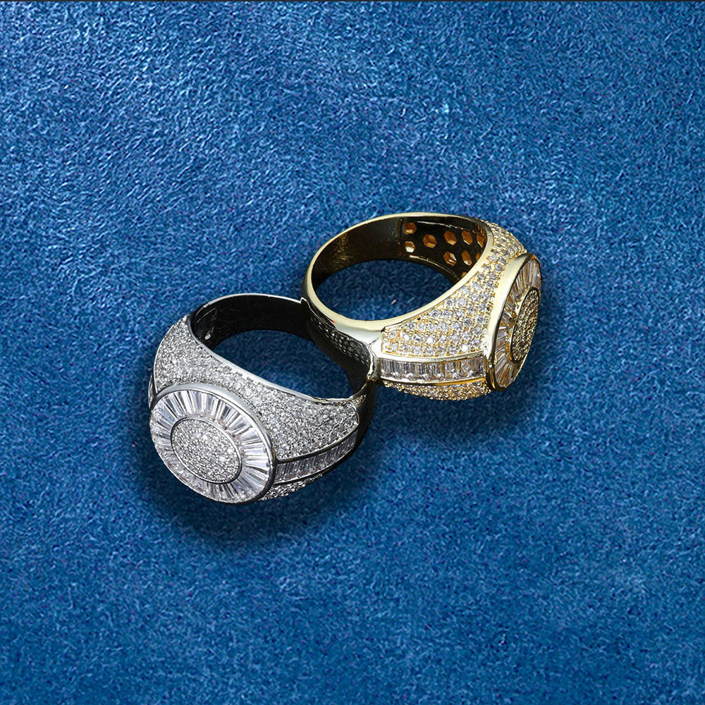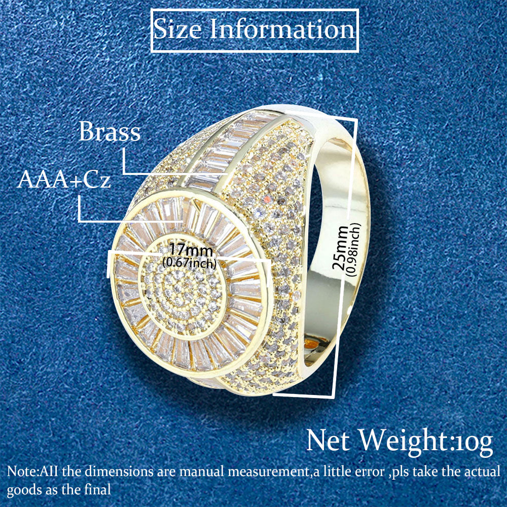 Make a powerful statement with the hip hop style ring,Made from high-quality copper and finished with 18K gold or white gold plating,iced out with dazzling Cubic Zirconia stones that mimic the brilliance of diamonds, this ring is perfect for those who want to make an impression. Its bold design brings a distinctive flair to your outfit, making it the ideal accessory for both casual and special occasions.