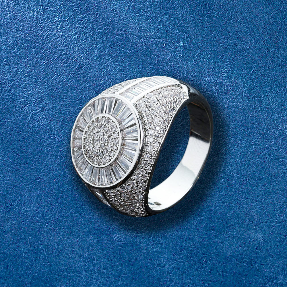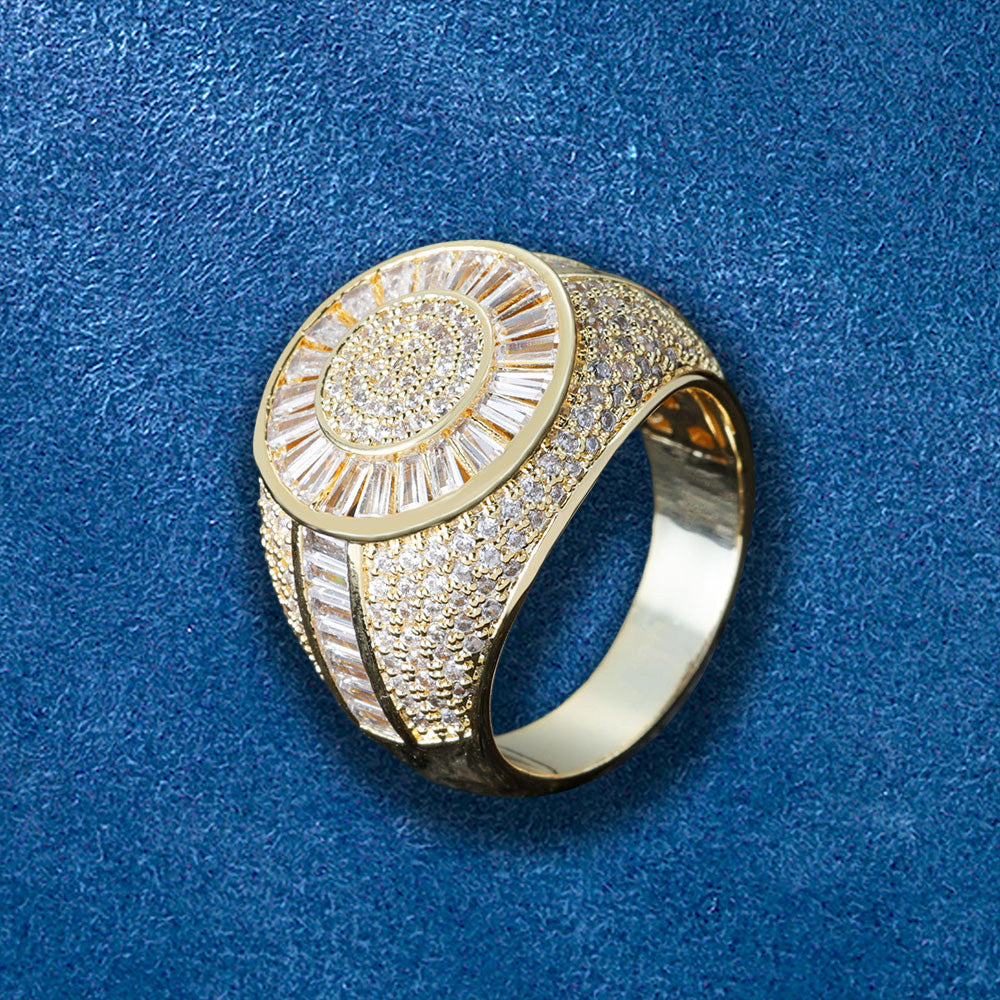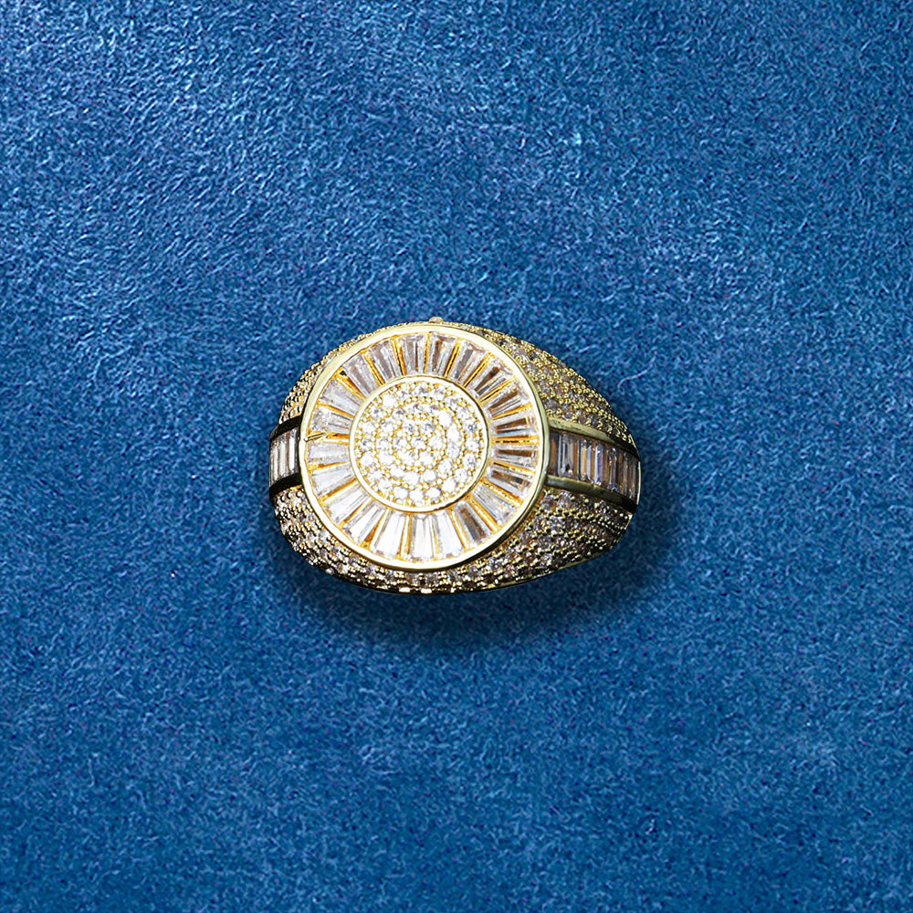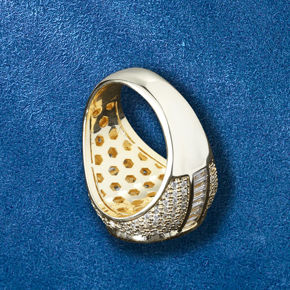 Make a powerful statement with the hip hop style ring,Made from high-quality copper and finished with 18K gold or white gold plating,iced out with dazzling Cubic Zirconia stones that mimic the brilliance of diamonds, this ring is perfect for those who want to make an impression. Its bold design brings a distinctive flair to your outfit, making it the ideal accessory for both casual and special occasions.