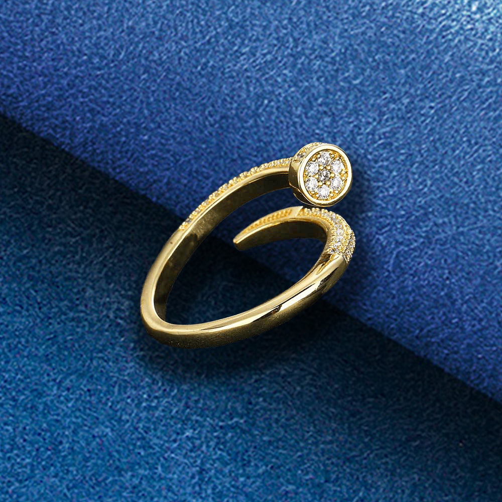 Step into boldness with our Innovative Nail Design Ring. Set in 14K Gold, this ring challenges traditional aesthetics and embraces a daring spirit, perfect for those who are not afraid to stand out with a distinctive fashion statement.This ring is beautifully crafted from 14K gold and adorned with a meticulously set CZ stone, ensuring both resilience and sparkle without the usual plating terms. It blends premium materials for an eye-catching finish that's both luxurious and daring.Packaged in an elegant box, it's an ideal gift for anyone who loves to express their unique style boldly. This ring is not just a piece of jewelry; it's a statement of individuality and courage.