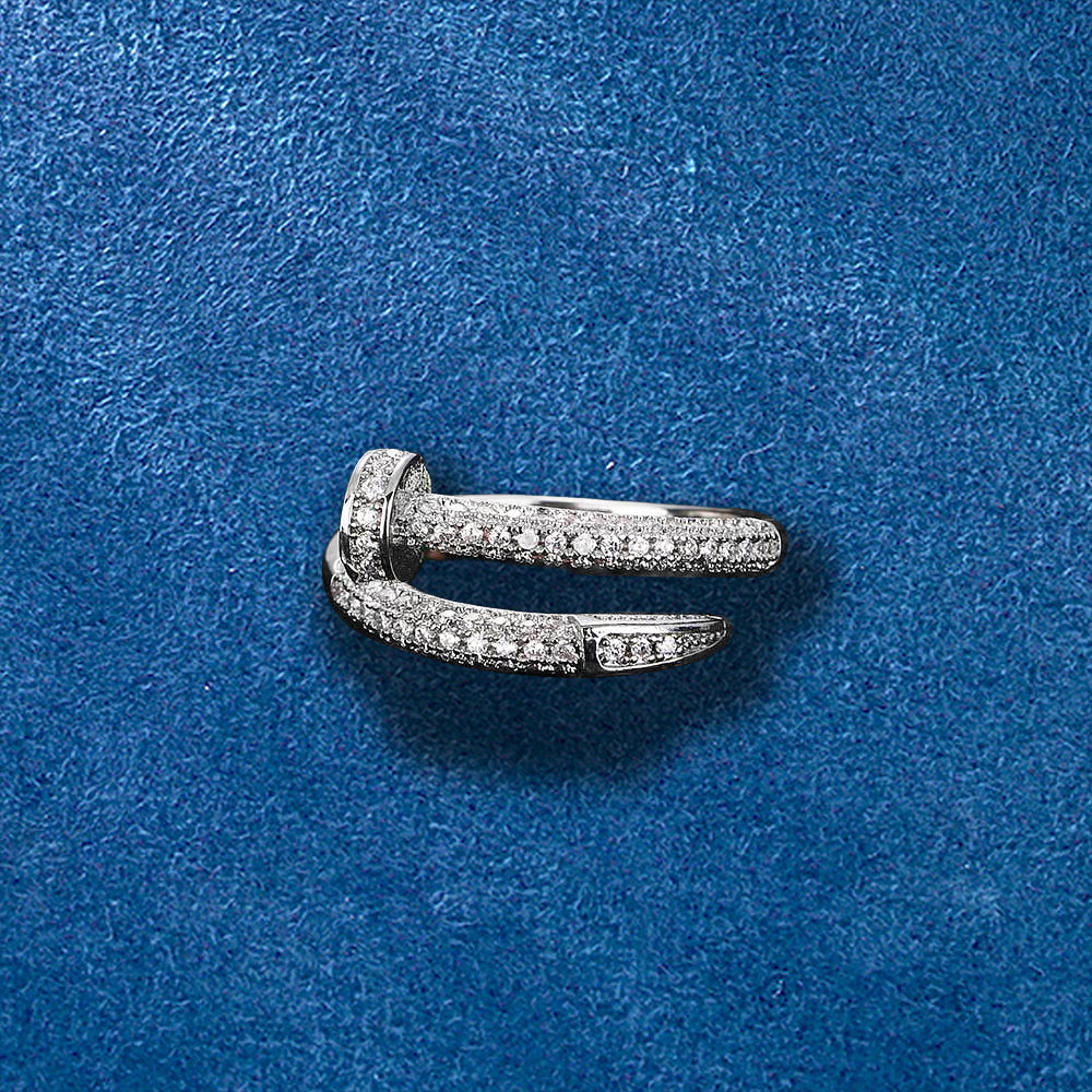 Iced Out Nail Shape Adjustable Bracelet Ring