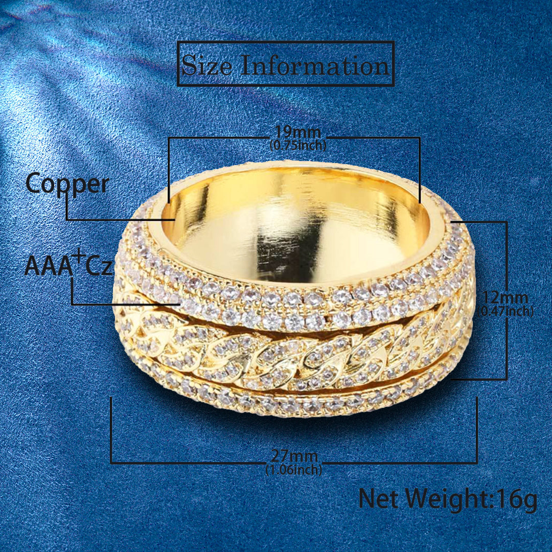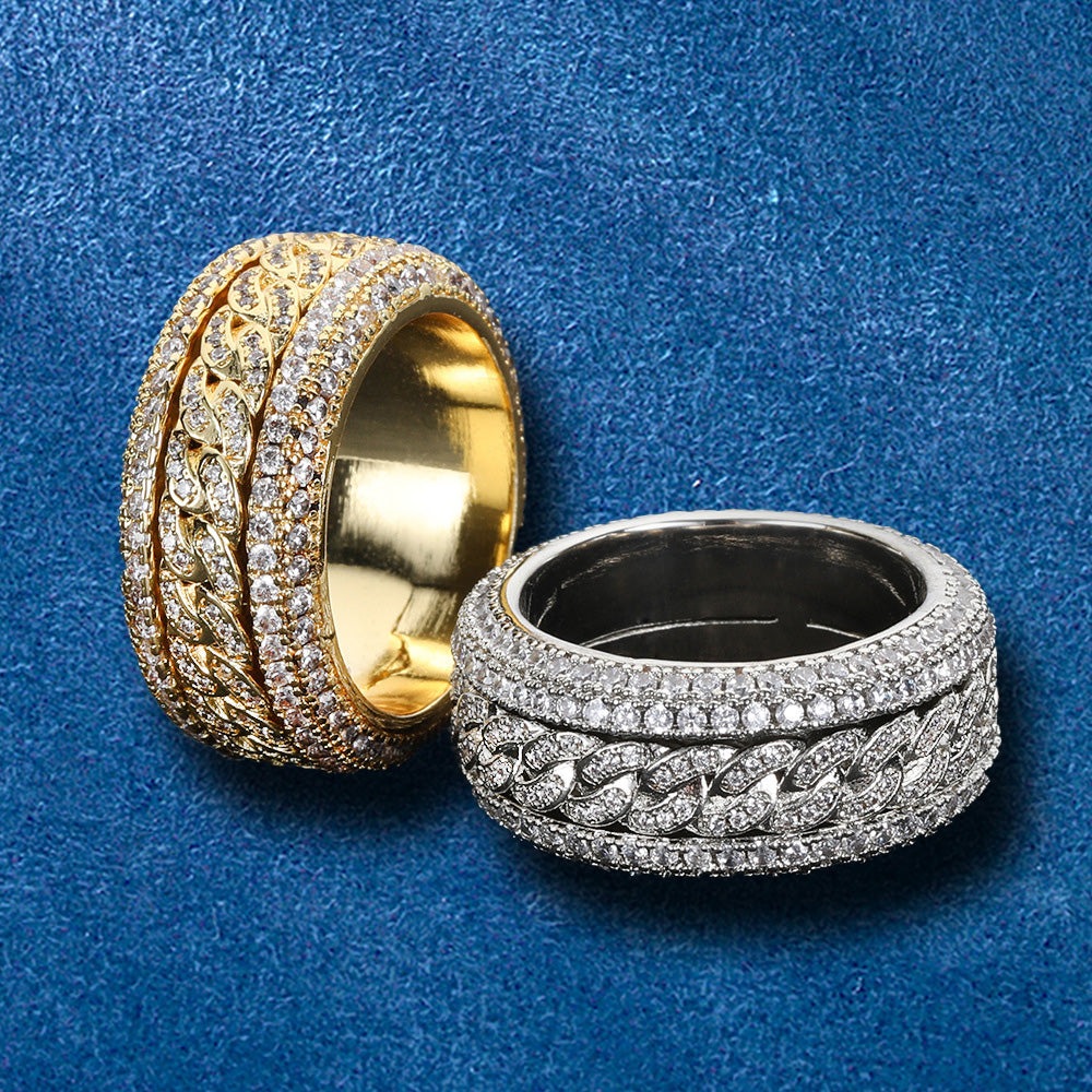 Spinning Iced Out Cuban Link Hip Hop Ring