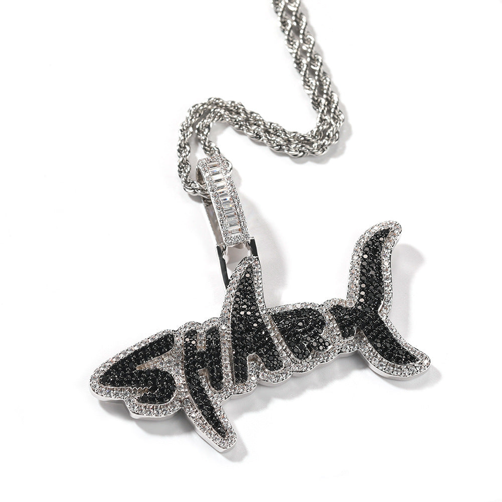 This Iced Shark Letter Pendant features a unique design of a shark in the shape of the letter "shark". Crafted with high-quality materials and iced with stunning cz stone, this pendant is the perfect statement piece for any shark lover or fashionista. Show off your love for sharks while adding a touch of bling to your outfit.