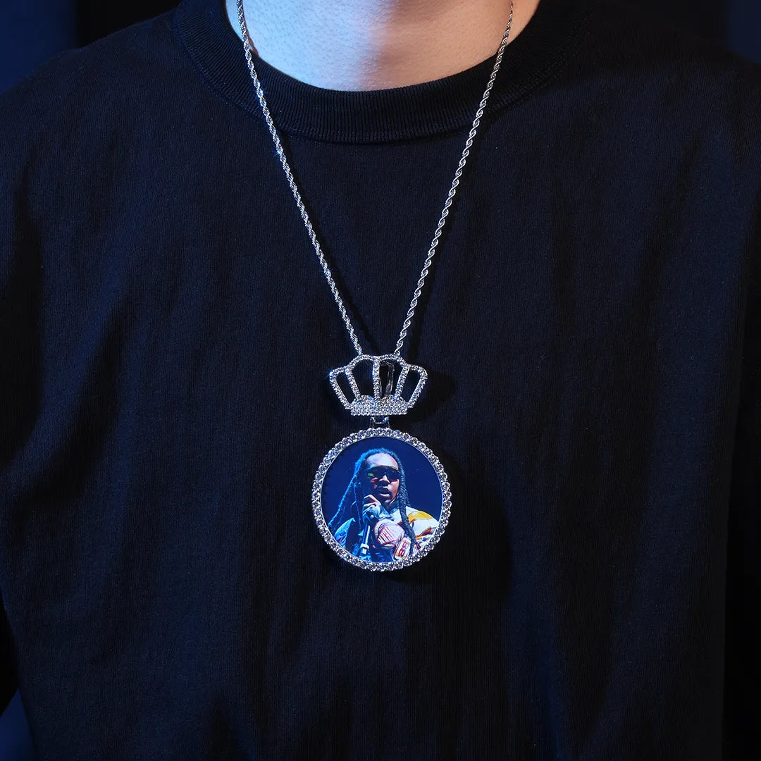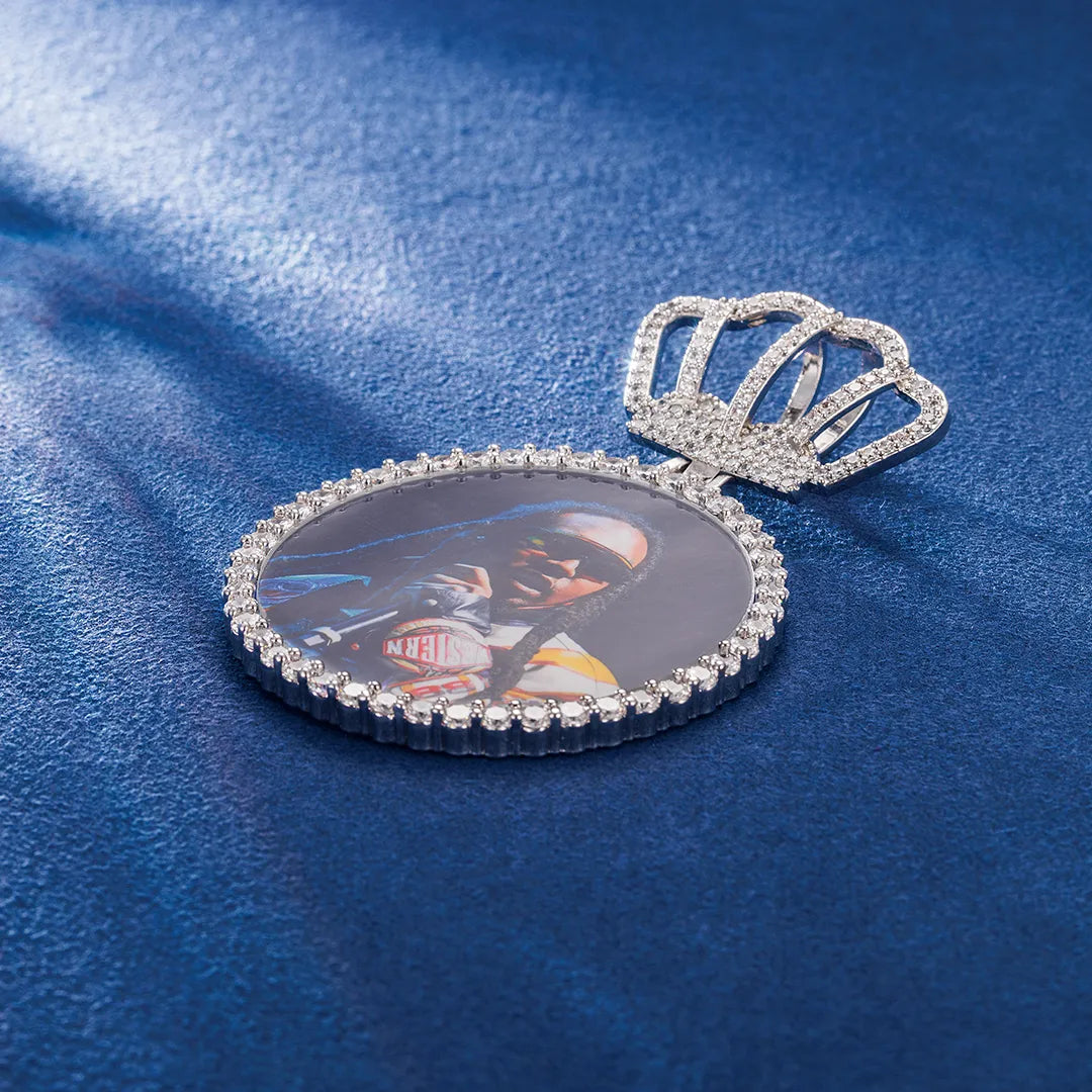 Showcase your special memories with this custom-made Round Photo with crown bail Pendant. It features a round-shaped design with your favorite image in the middle, making it a great memento or gift for someone special. Enjoy a vibrant, high-quality image that's guaranteed to last.