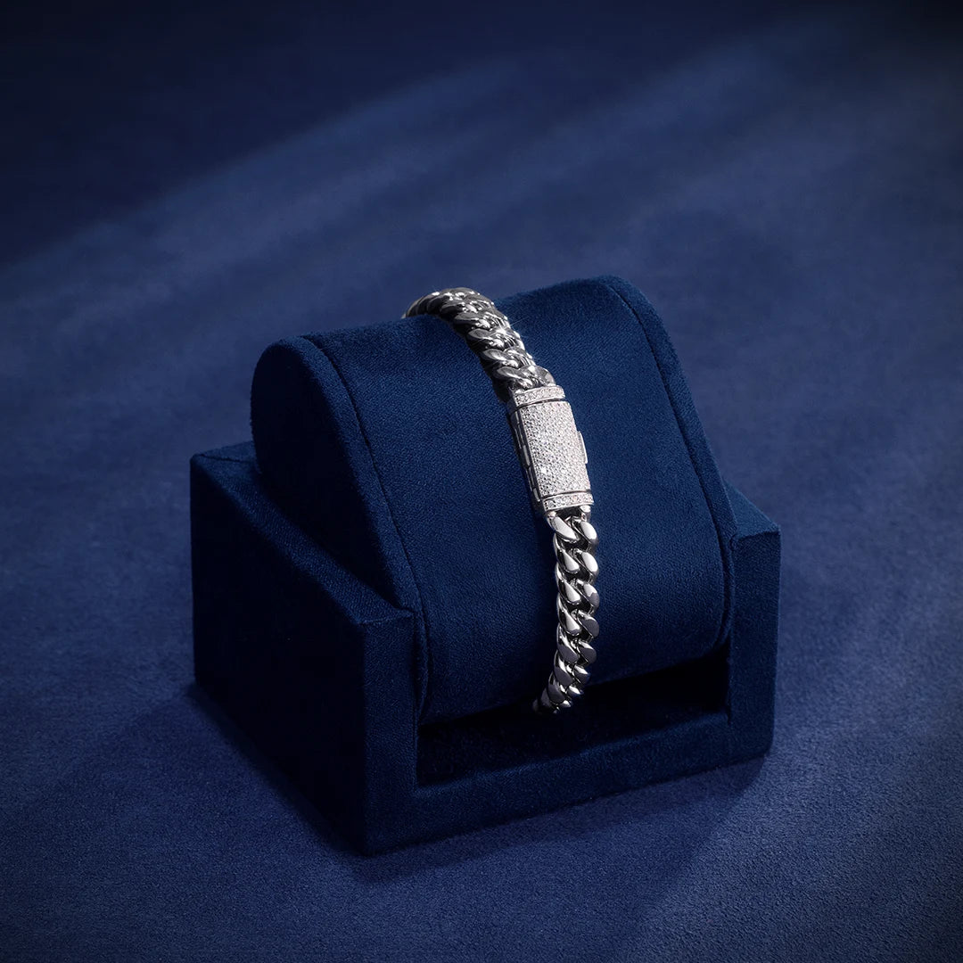 S925 8MM Miami Cuban Link Bracelet With Iced Clasp