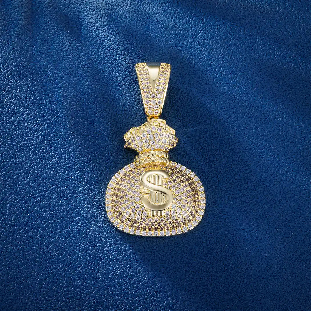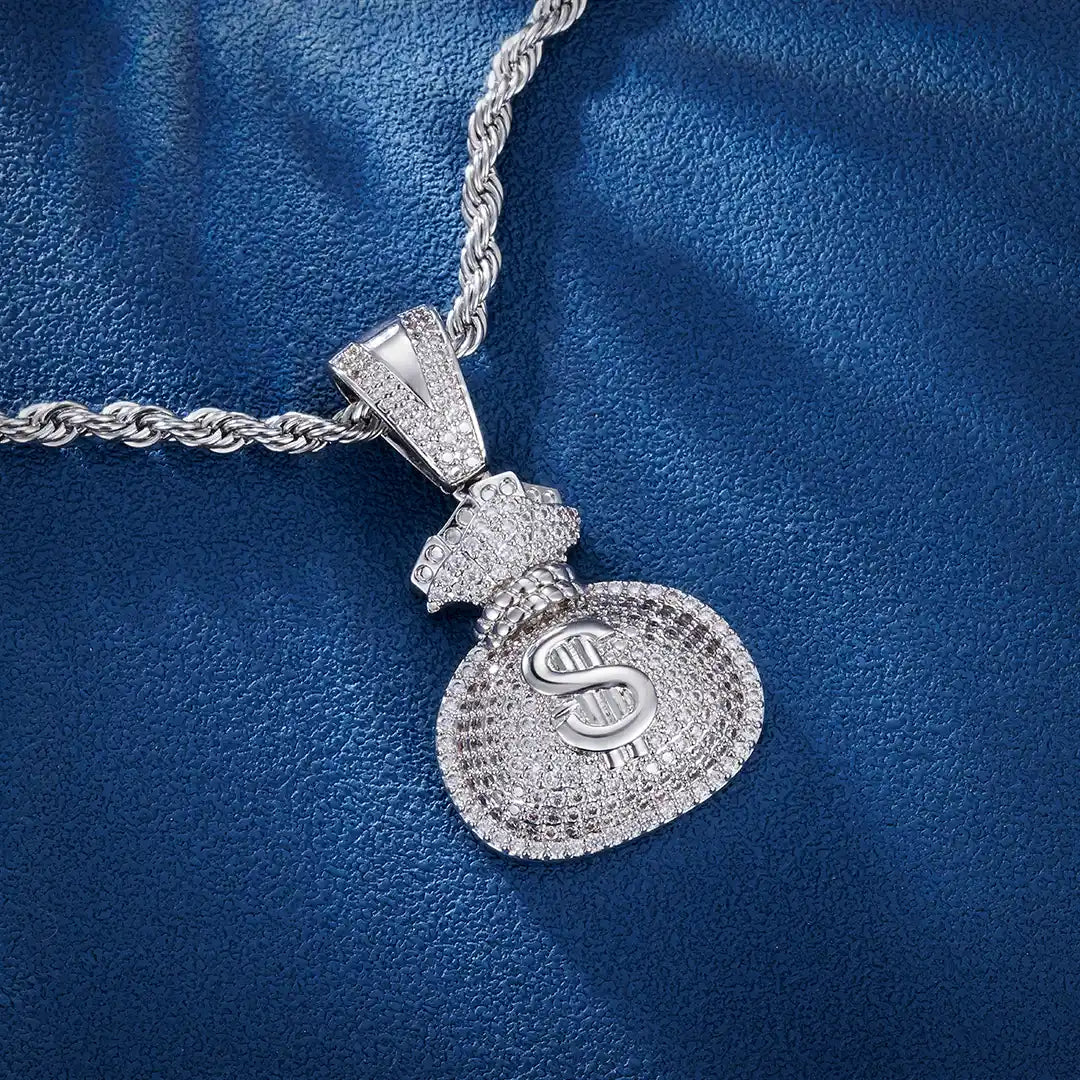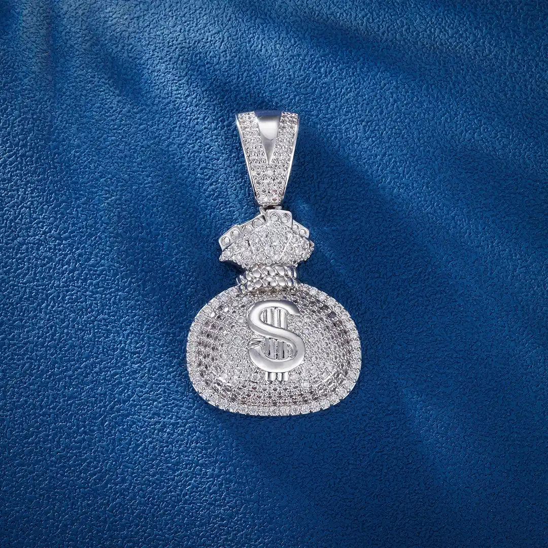 S925 Moissanite Mini Dollar Money Bag Pendant