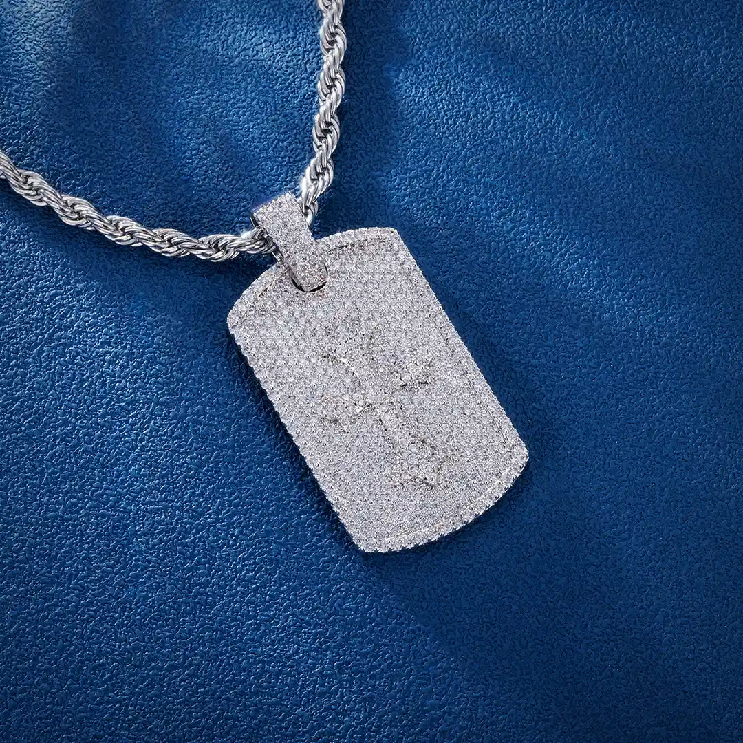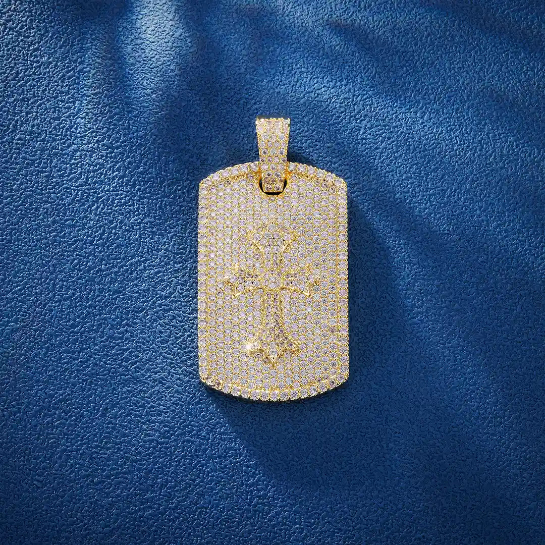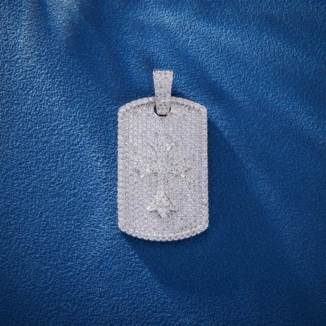 S925 Moissanite Carved Cross Cluster Tag Pendant