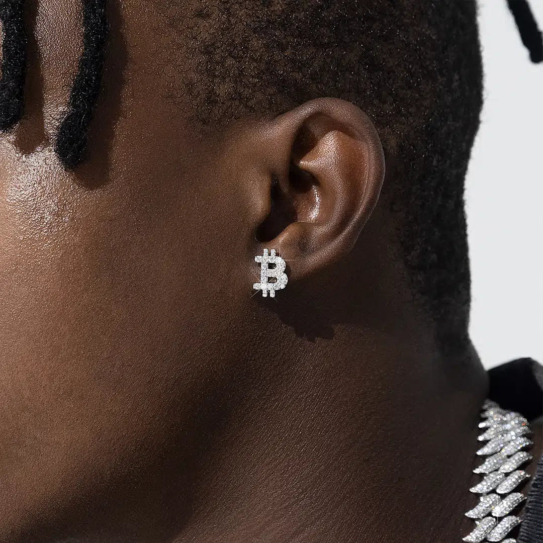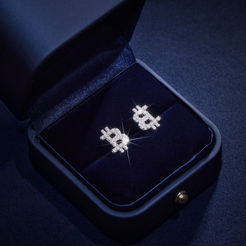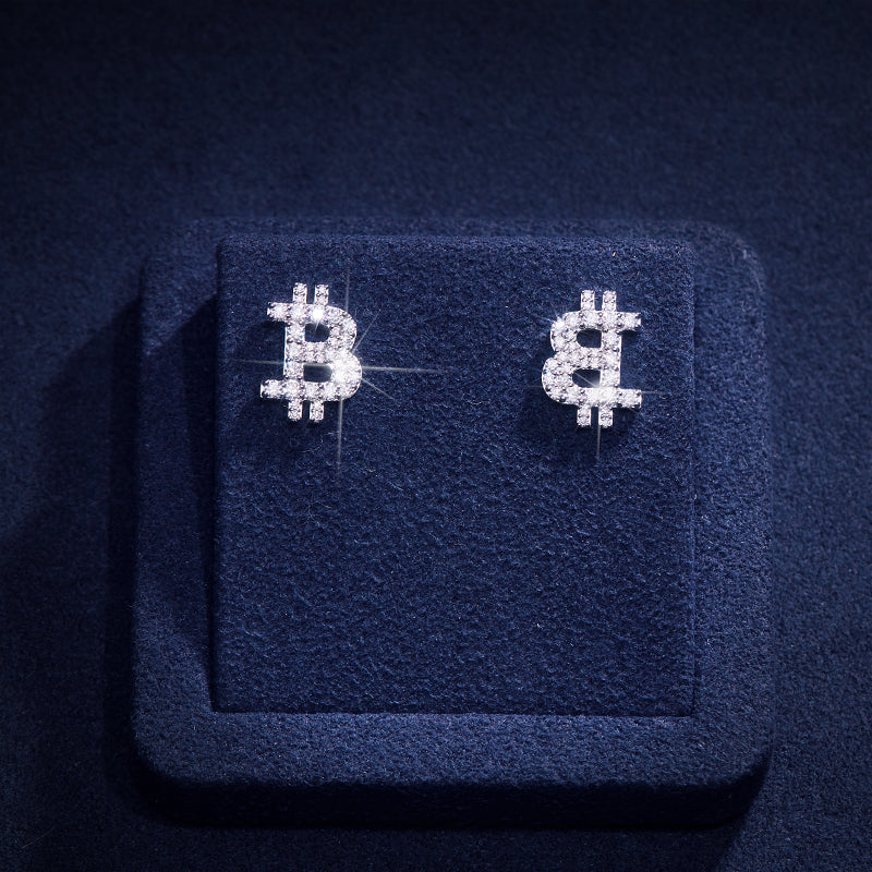 S925 Silver Moissanite Bitcoin Sign Earrings