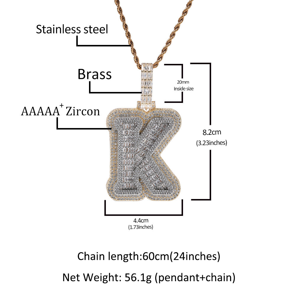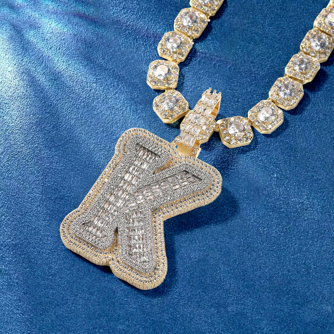 Custom Alphabet Initial Baguette Letter Pendant