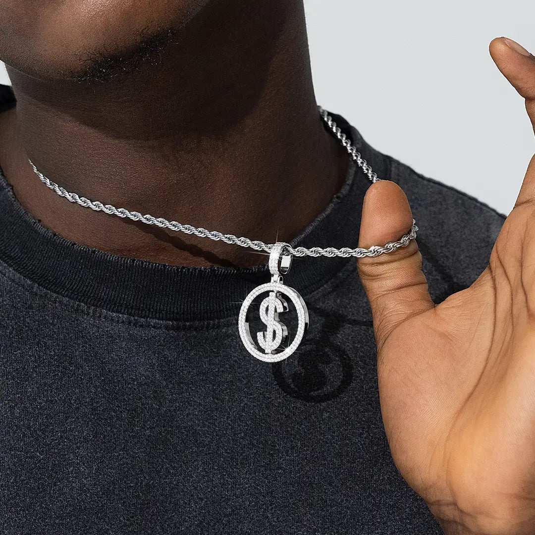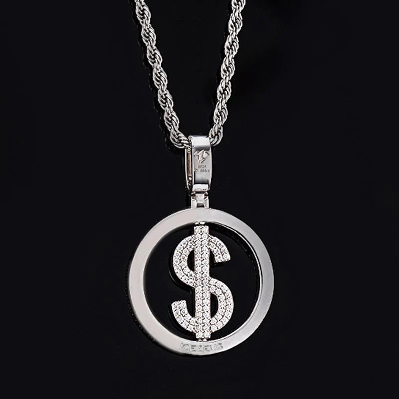 ICEZEUS 925 Sterling Silver Moissanite Spin $ Pendant