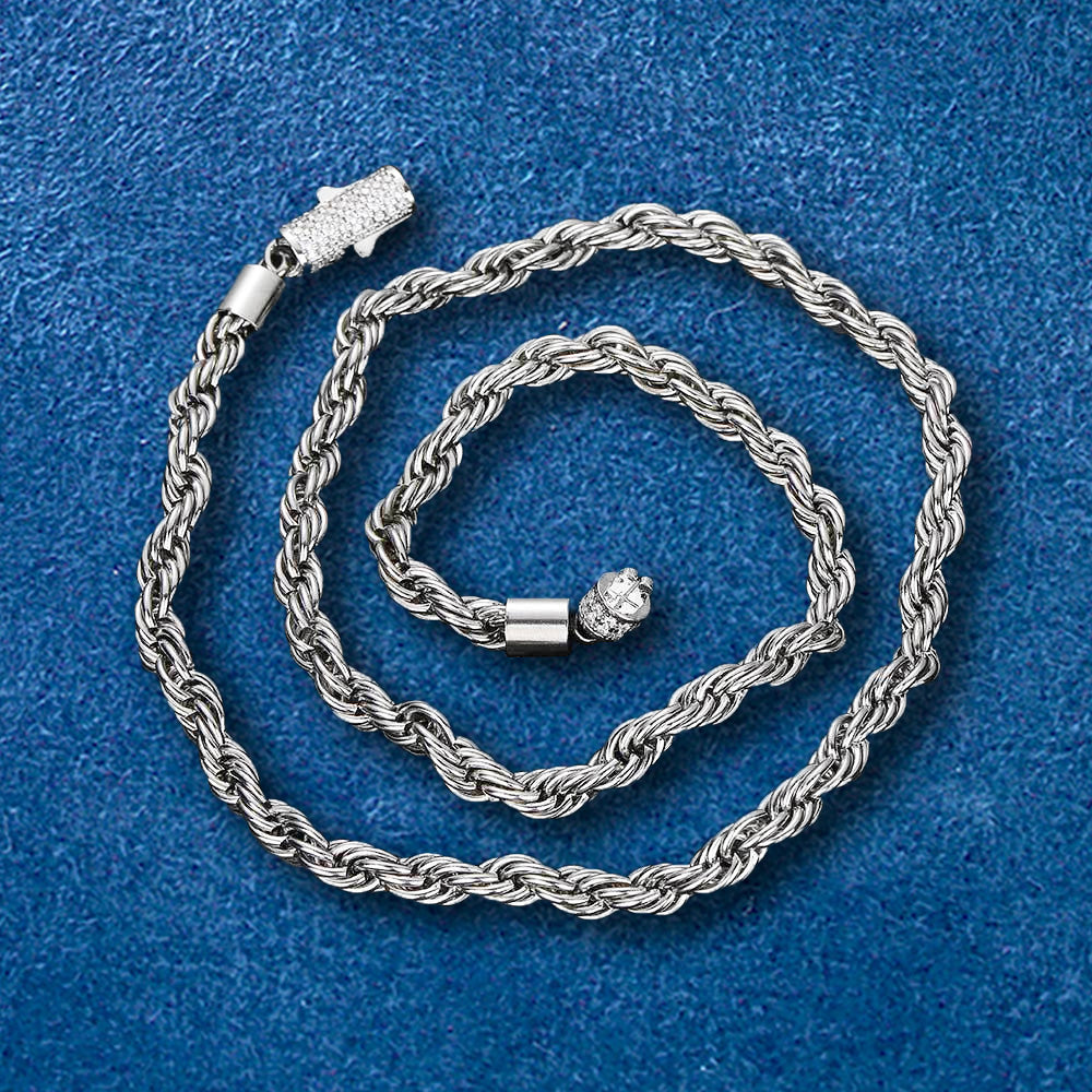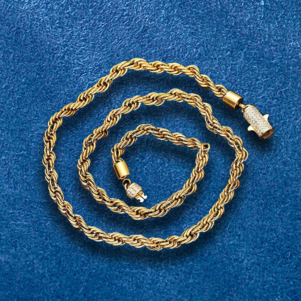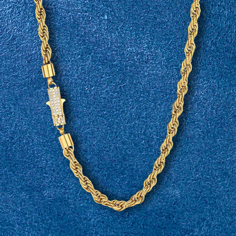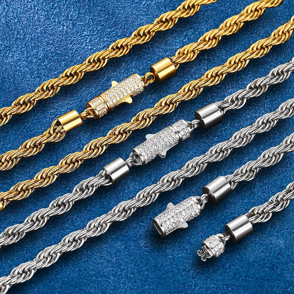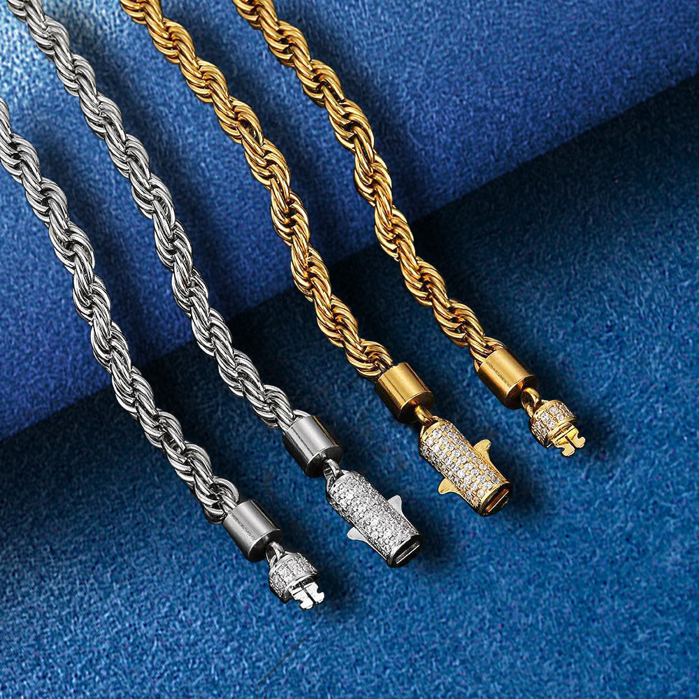6mm Iced Out Clasp Stainless Steel 18K Gold Plated Twist Rope Chain