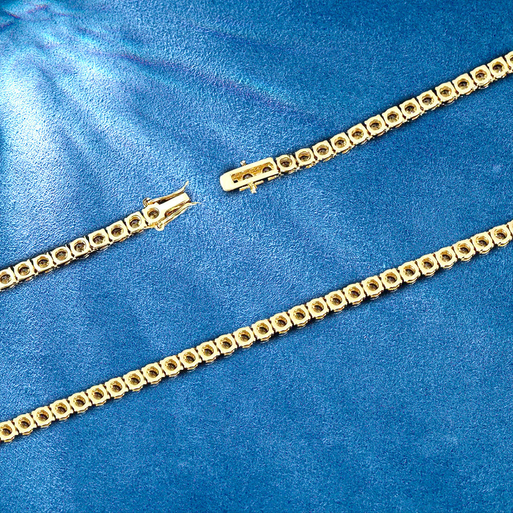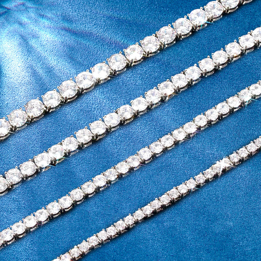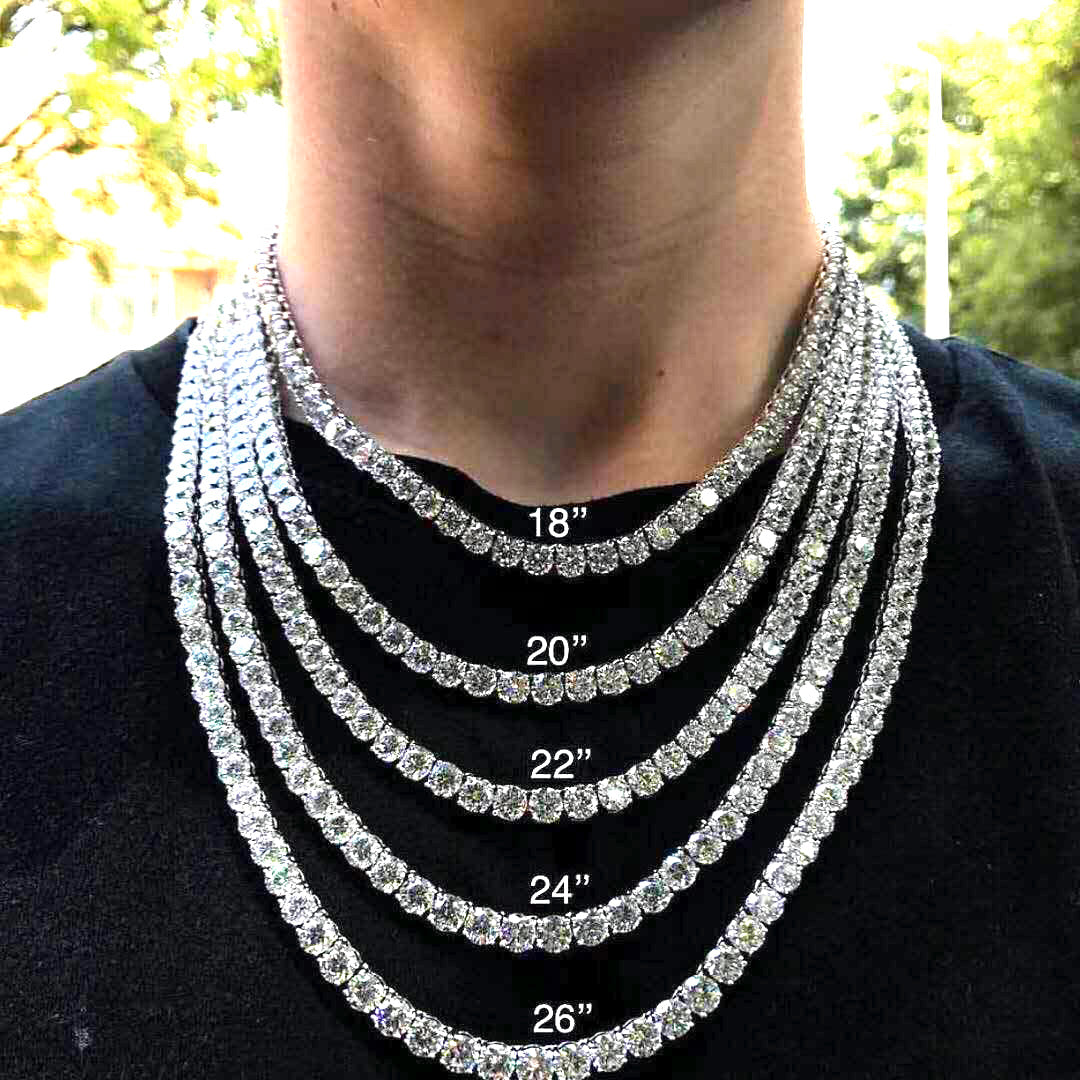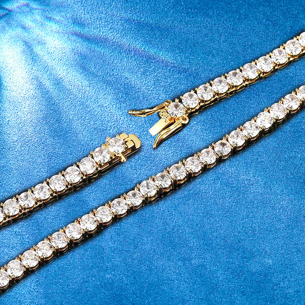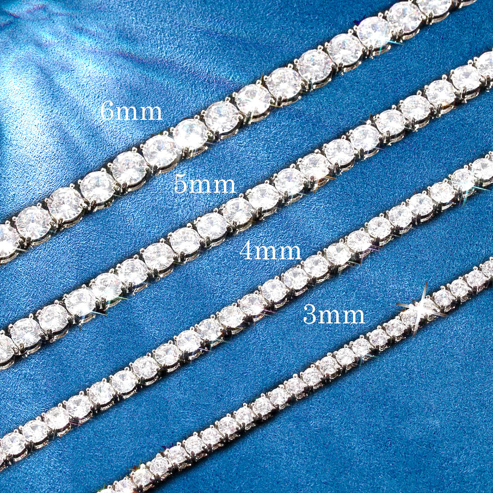 3mm Round Cut Iced Out Tennis Link Chain Hip Hop CZ Box Clasp Necklace