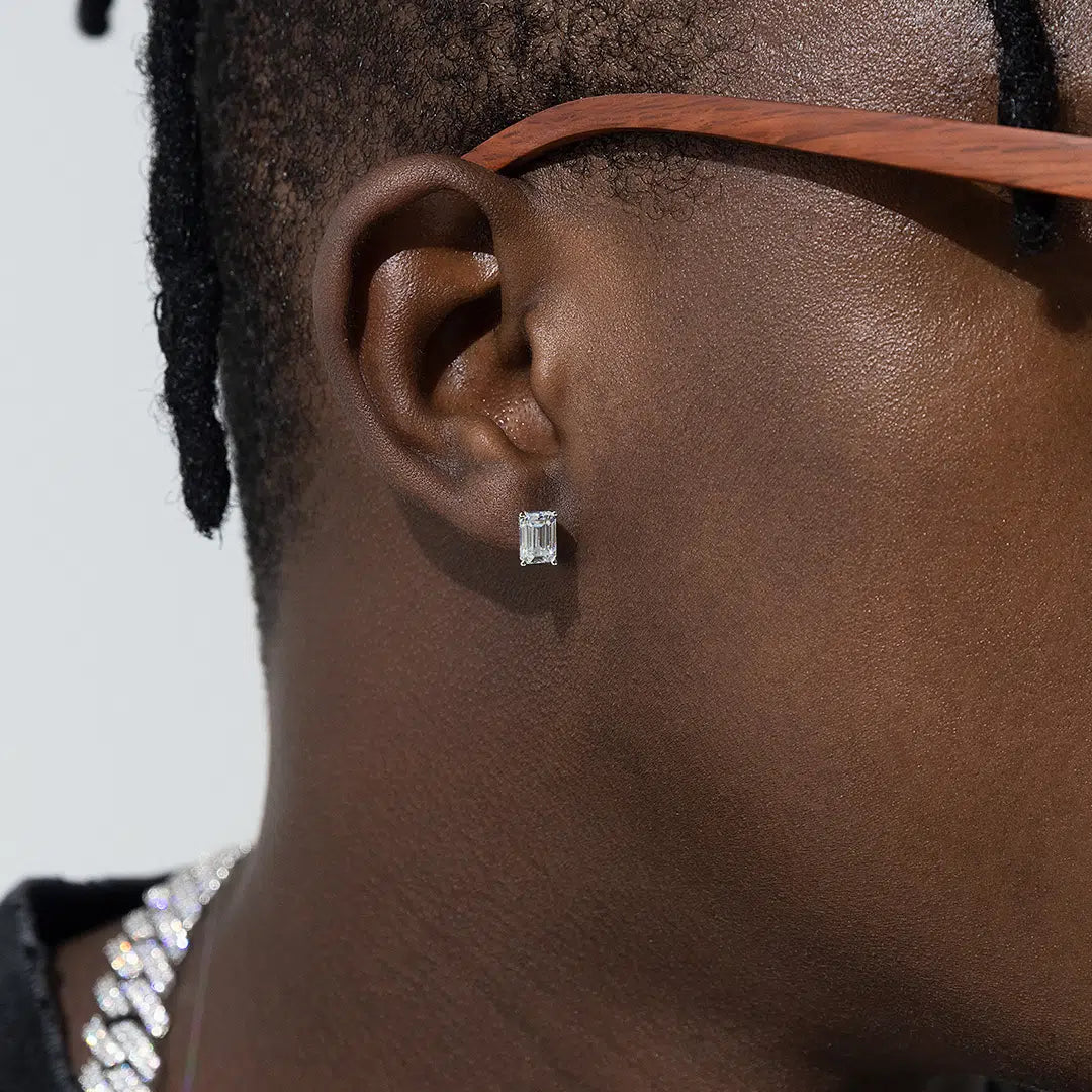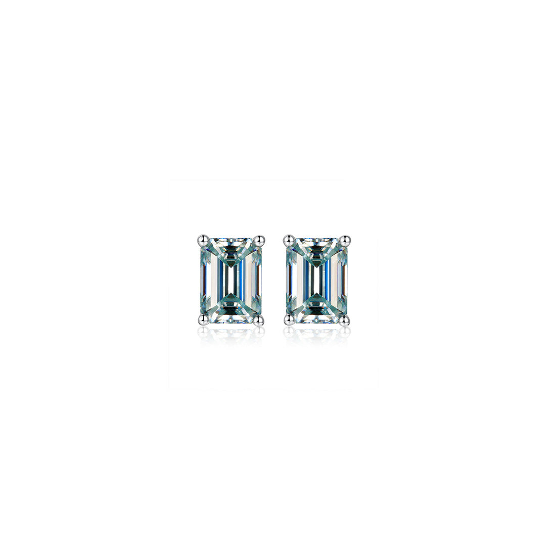 This pair of earrings features at 1ct. Rare color emerald cut moissanites which means can perfect fits for any occasion to let you stand out.