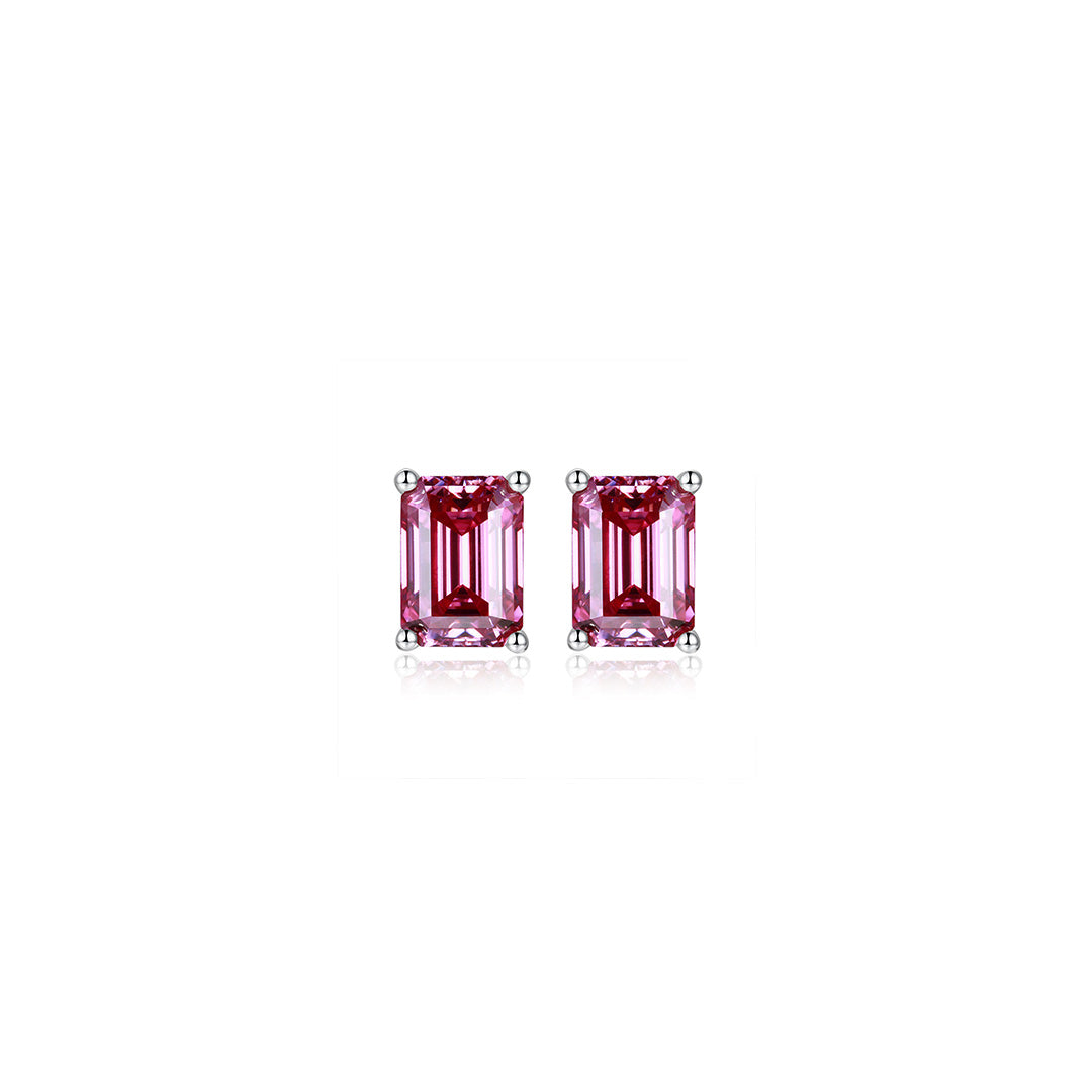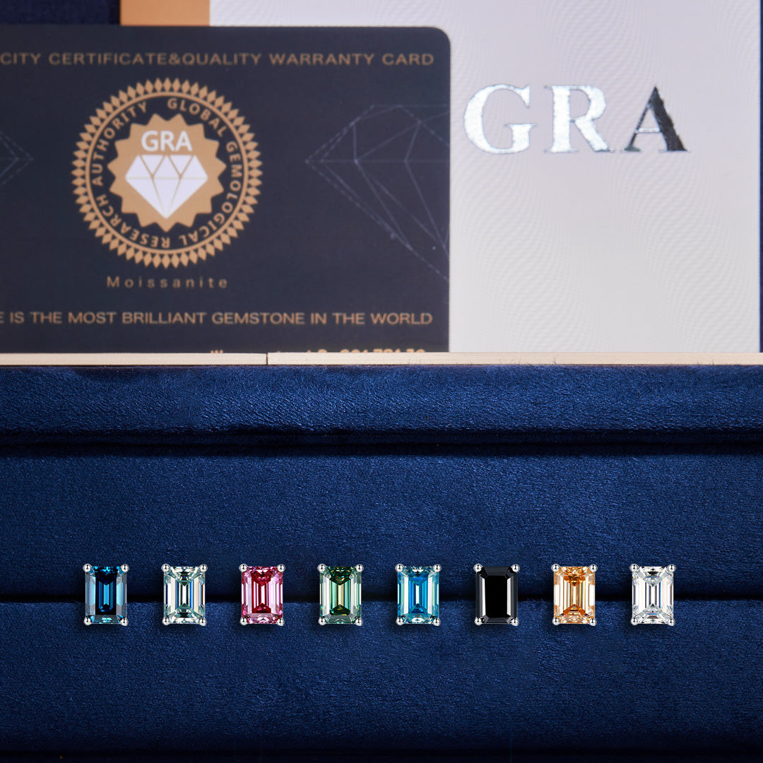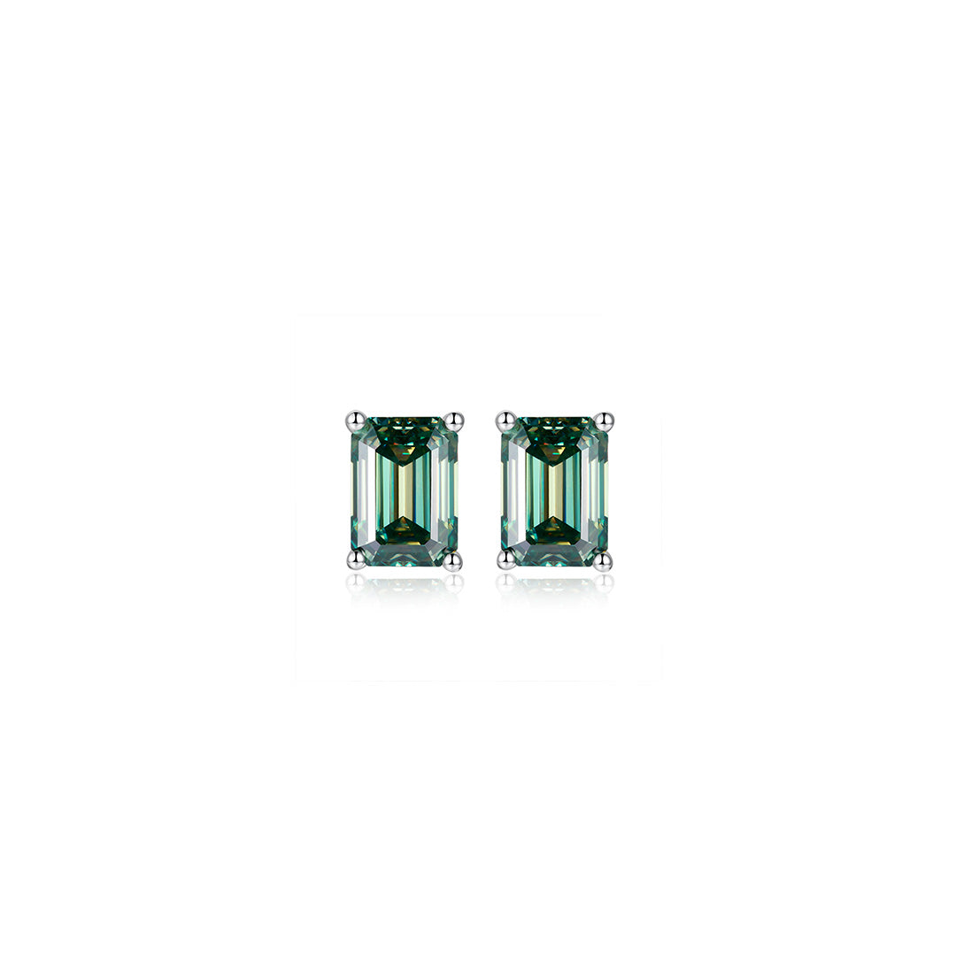 S925 Silver Emerald cut Rare Color Moissanite Stud Earrings