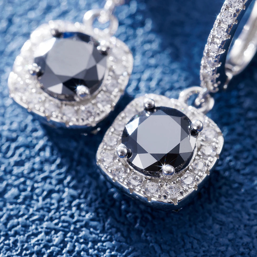 This earring uses the royal black round-cut as the main stone around with small CZ stones. This series is in line with every person who pursues personality and breaks the routine.